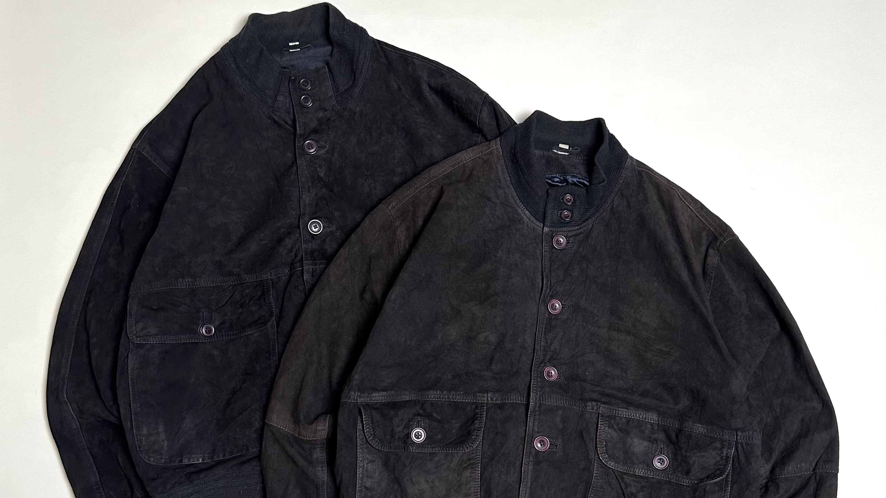 80's NUBACK LEATHER VALSTER TYPE NOCOLLAR JACKET