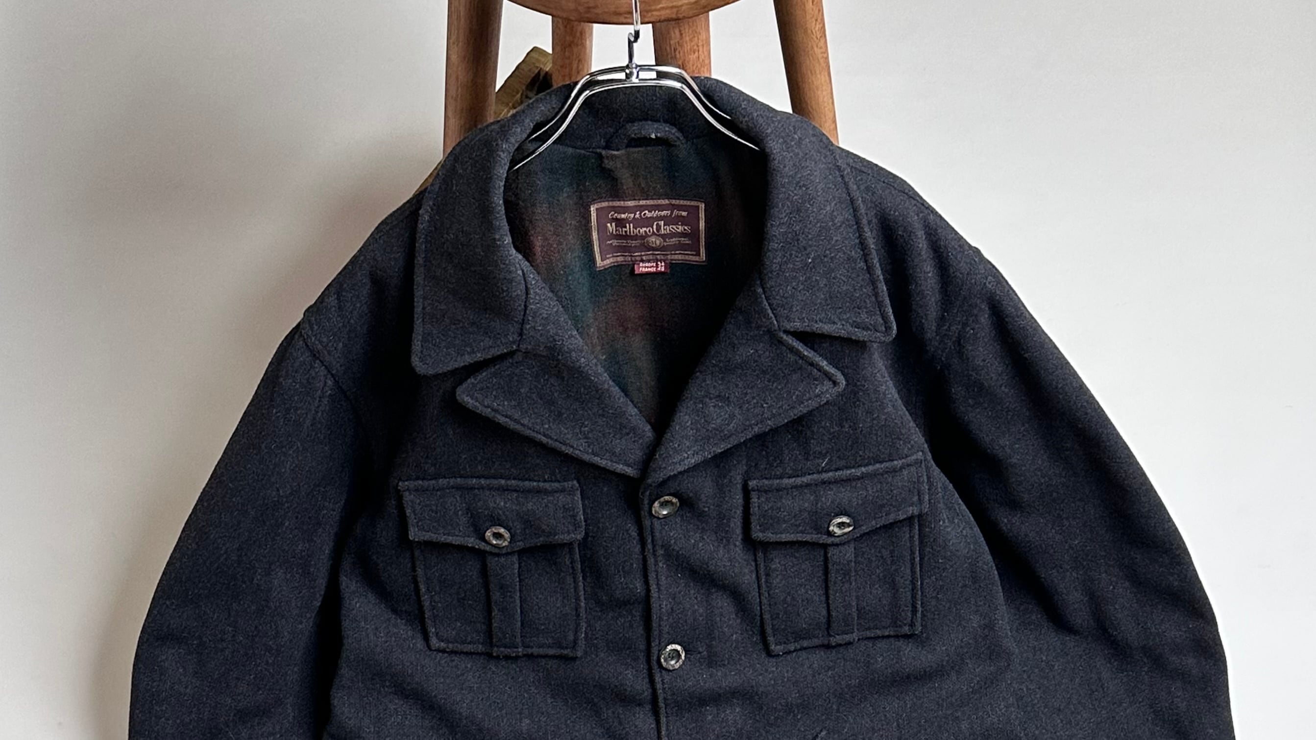 90's カウボーイスタイルとイタリアのファクトリーでの製造による高品質な質の高いカジュアルウェアを展開する"Malboro Classics"より。 肉厚なメルトンウールを使用し、マッキーノやサファリジャケットを思わせるクラシカルで無駄のない洗練されたデザインが魅力の一着。 今期当店としても推したいハーフレングスに、深みのあるチャコールグレーの上品なカラーリング。 生地の質感、ルックス、実際に羽織った際の雰囲気まで、総じて非常に上品な印象です。 飽きずに長く付き合っていただける素晴らしい1着だと思います。 是非◎ 【condition】A 【material】 WOOL:80% NYLON:20% 【color】CHARCOAL GRAY 【size】 着丈:82cm 身幅:70.5cm 肩幅:56.5cm 袖丈:64.5cm MODEL:173cm