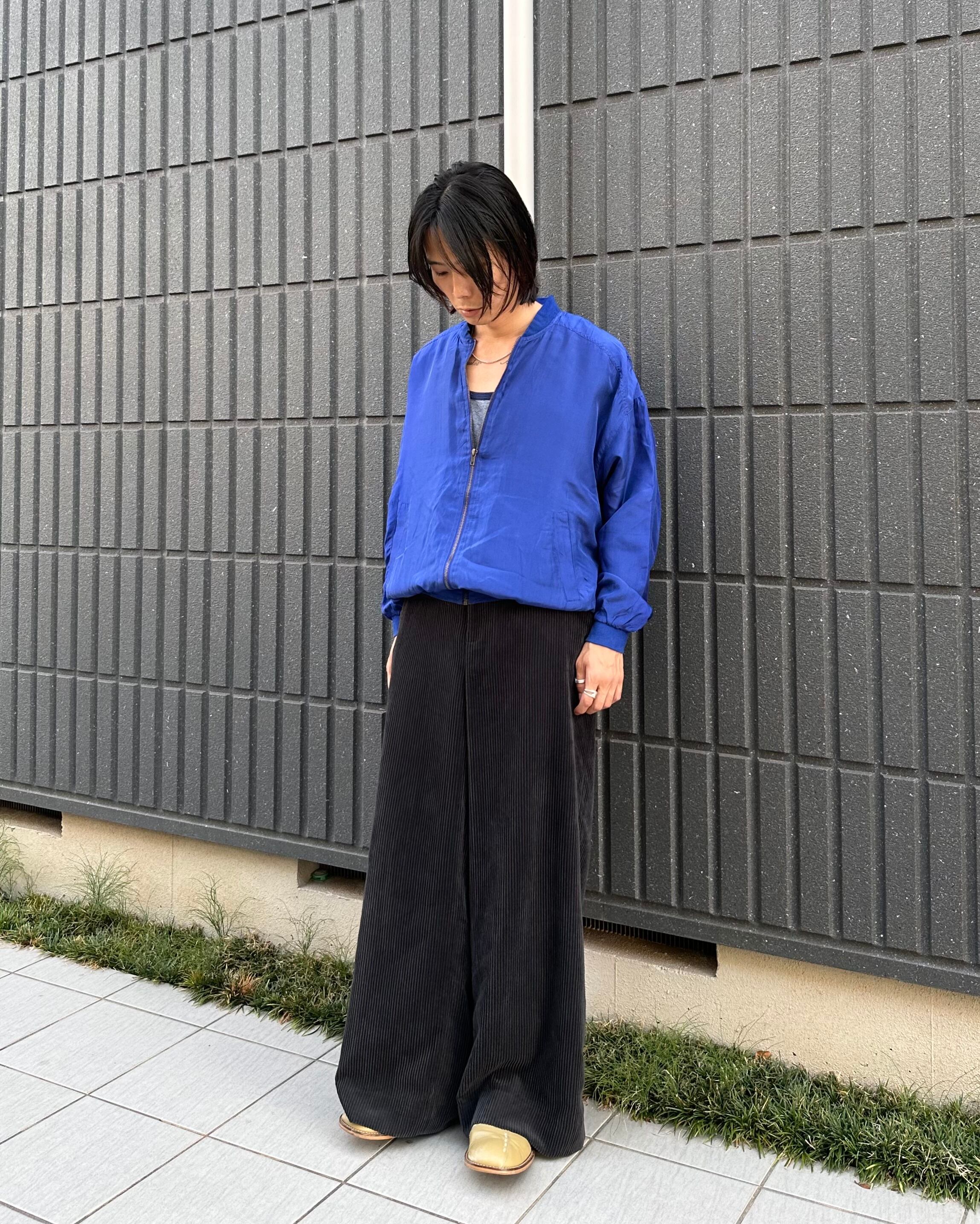 目を惹く美しいビビットブルーカラーにMA-1の様な丸みを帯びたとても気分なシルエットにシャツ感覚で羽織れる軽さが魅力的。