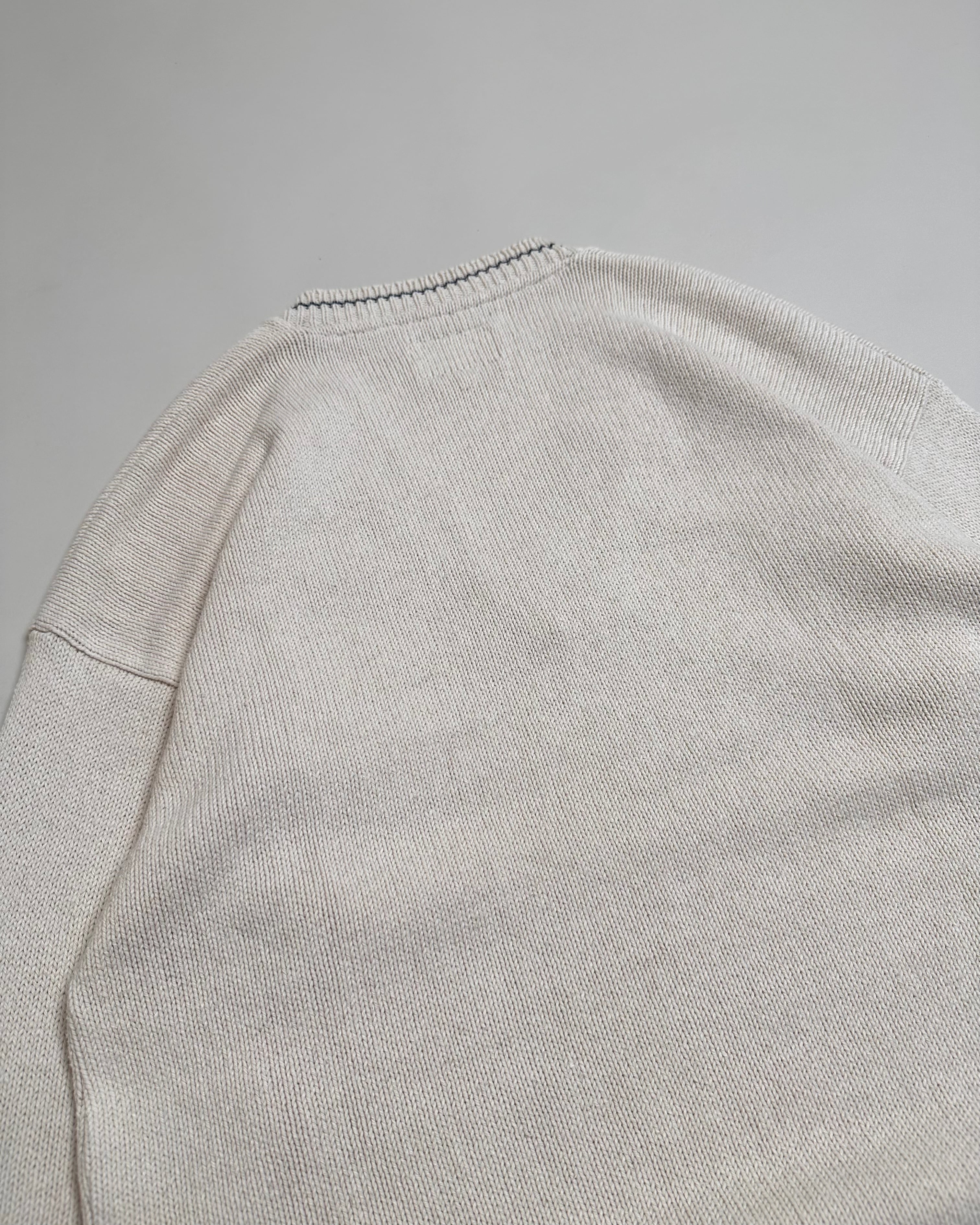 ずっしりと肉厚なオールコットンボディに特殊なストーンウォッシュ加工のかけられた独特なテクスチャー感が魅力的なコットンニット。