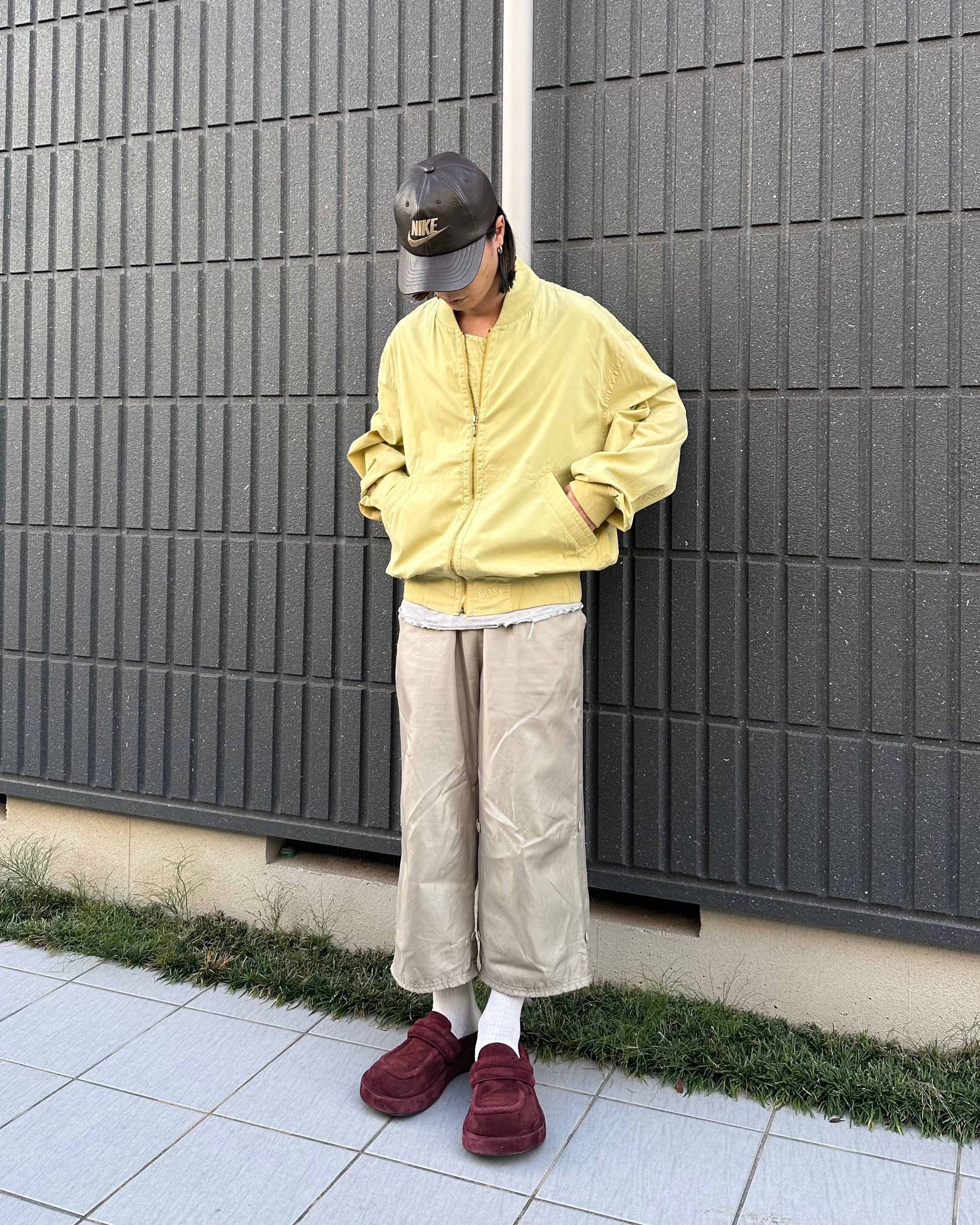 ハリのあるコットンツイルで燻んだライムイエローが印象的なMA-1TYPEジャケット。