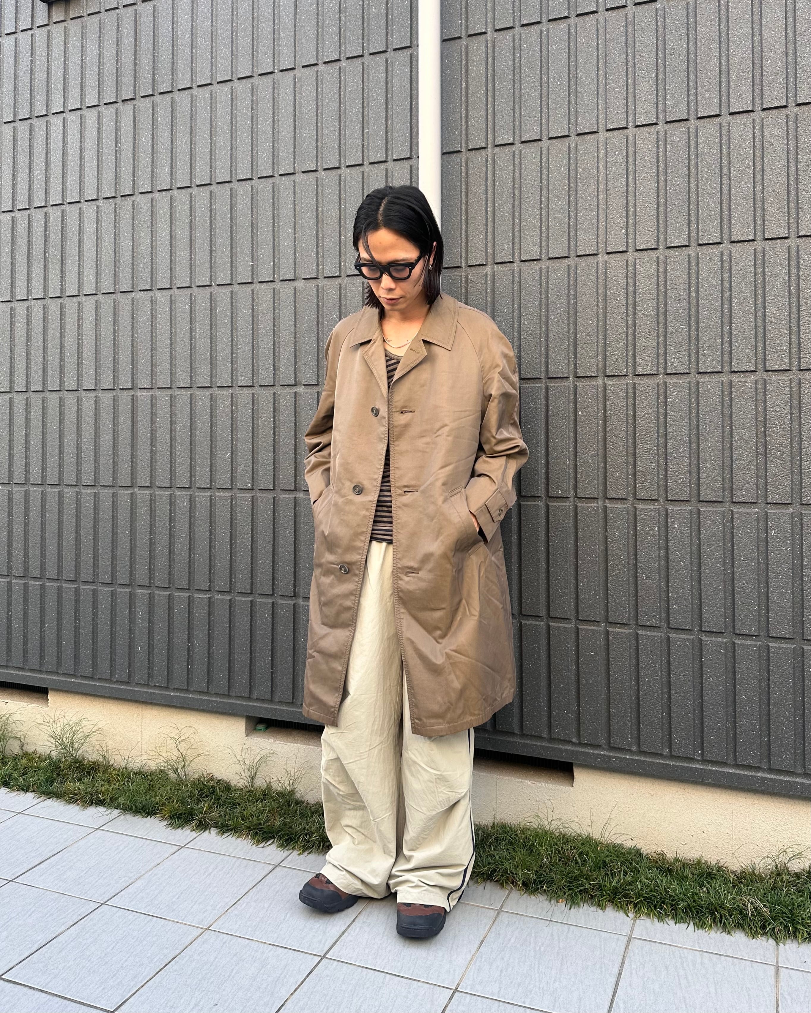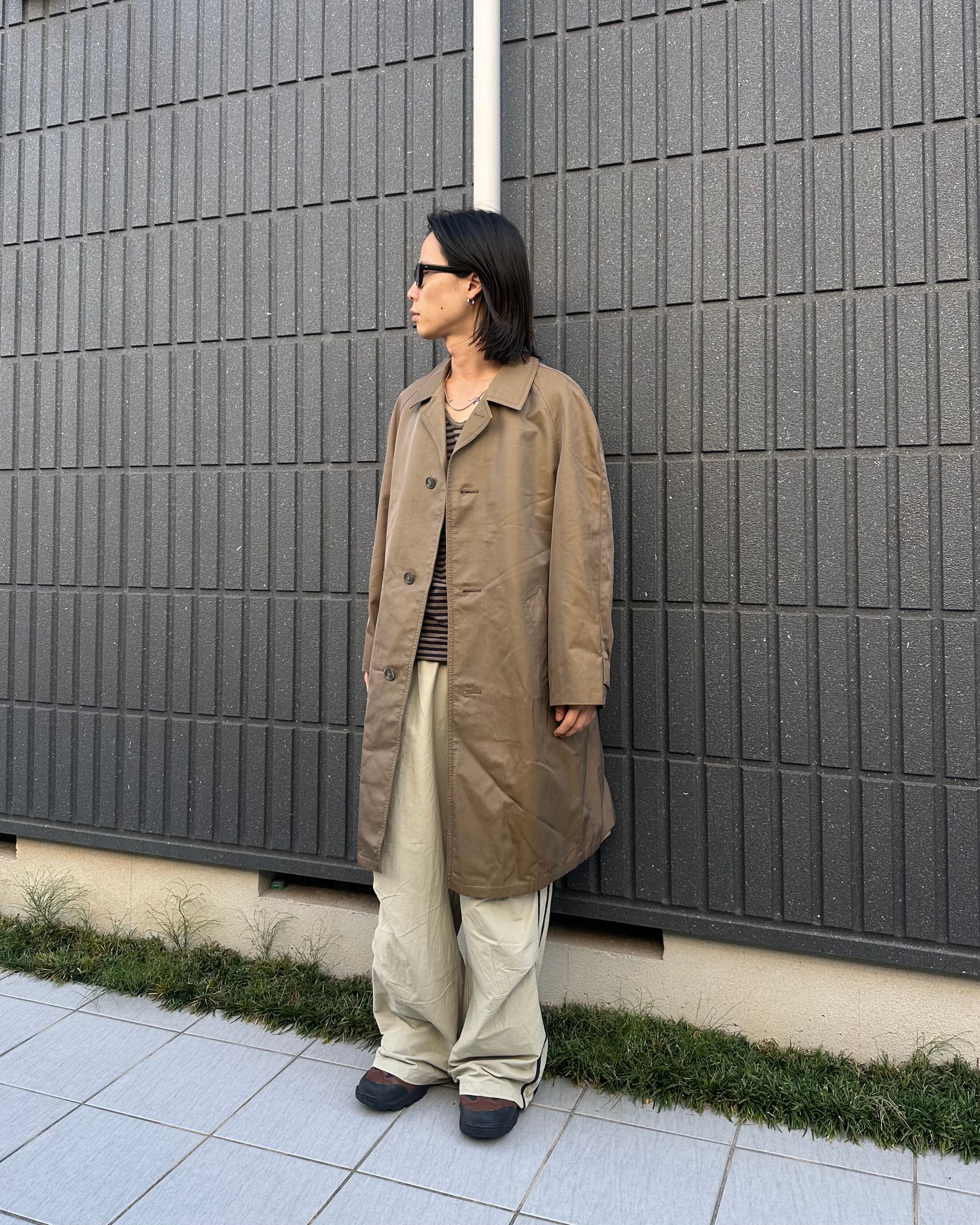 バーバリーの様なクラシックなルックスにハリのある生地感と光沢の載った生地感のバルマカーンコート。