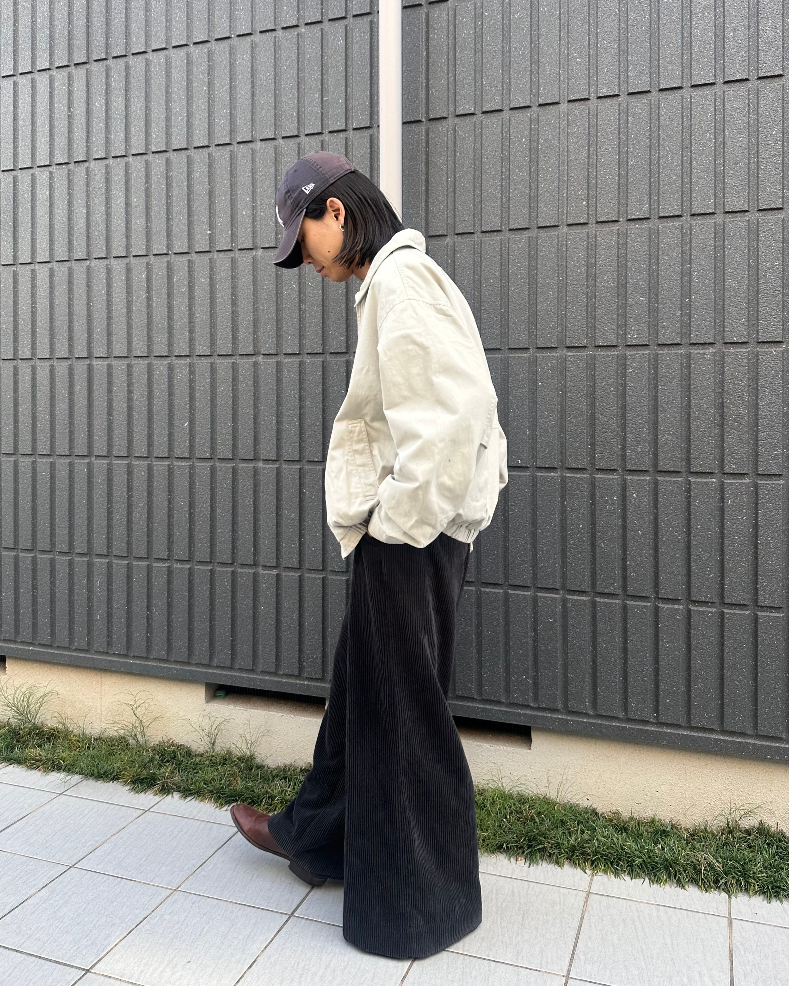 ラルフローレンの名作を思わせるシンプルなルックス、裾にはリブが仕込まれ丸みを帯びた気分なシルエット感に◎