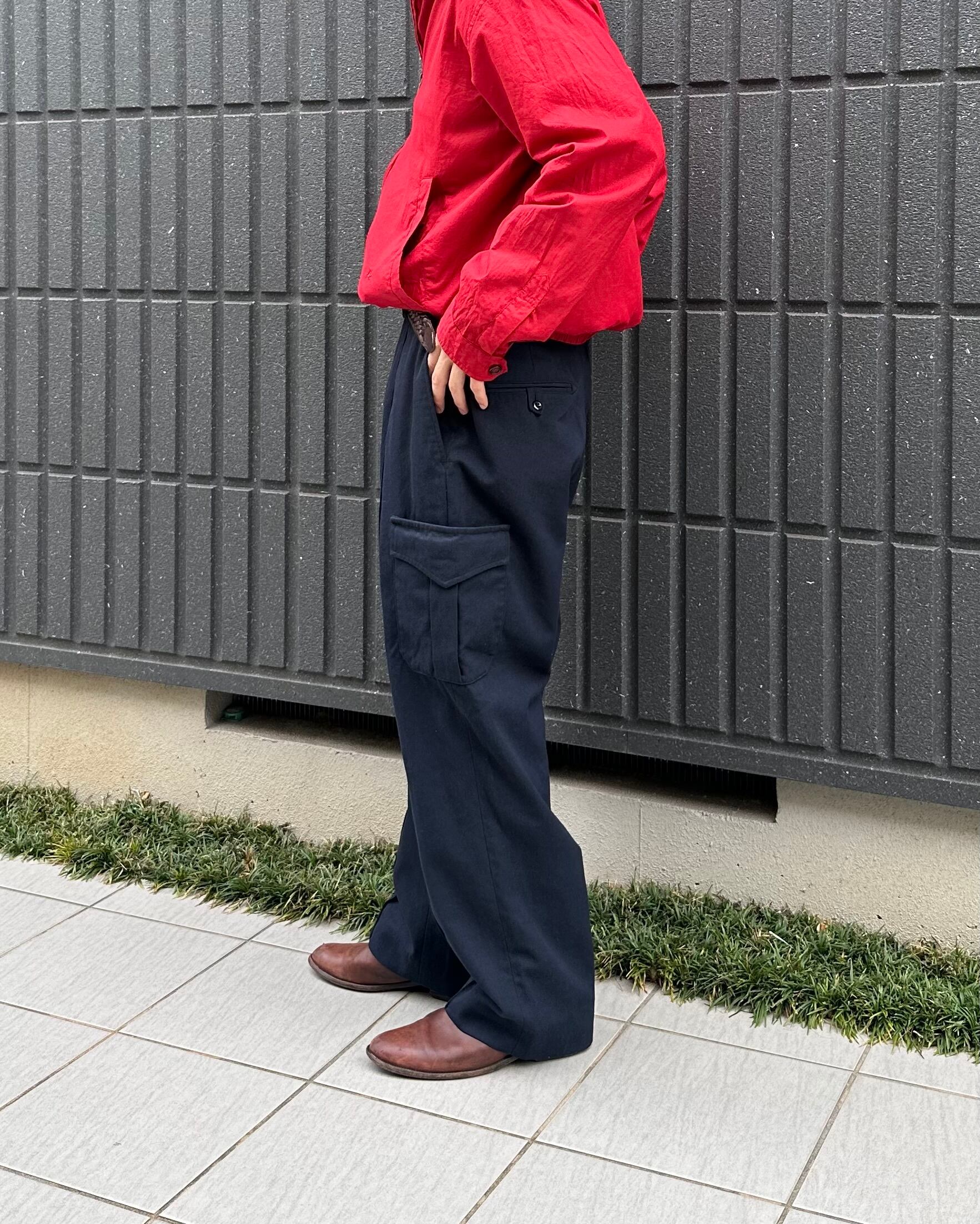 ミリタリーやワークのシーンに用いられるメタアラミド繊維を使用したワイドカーゴスラックス。