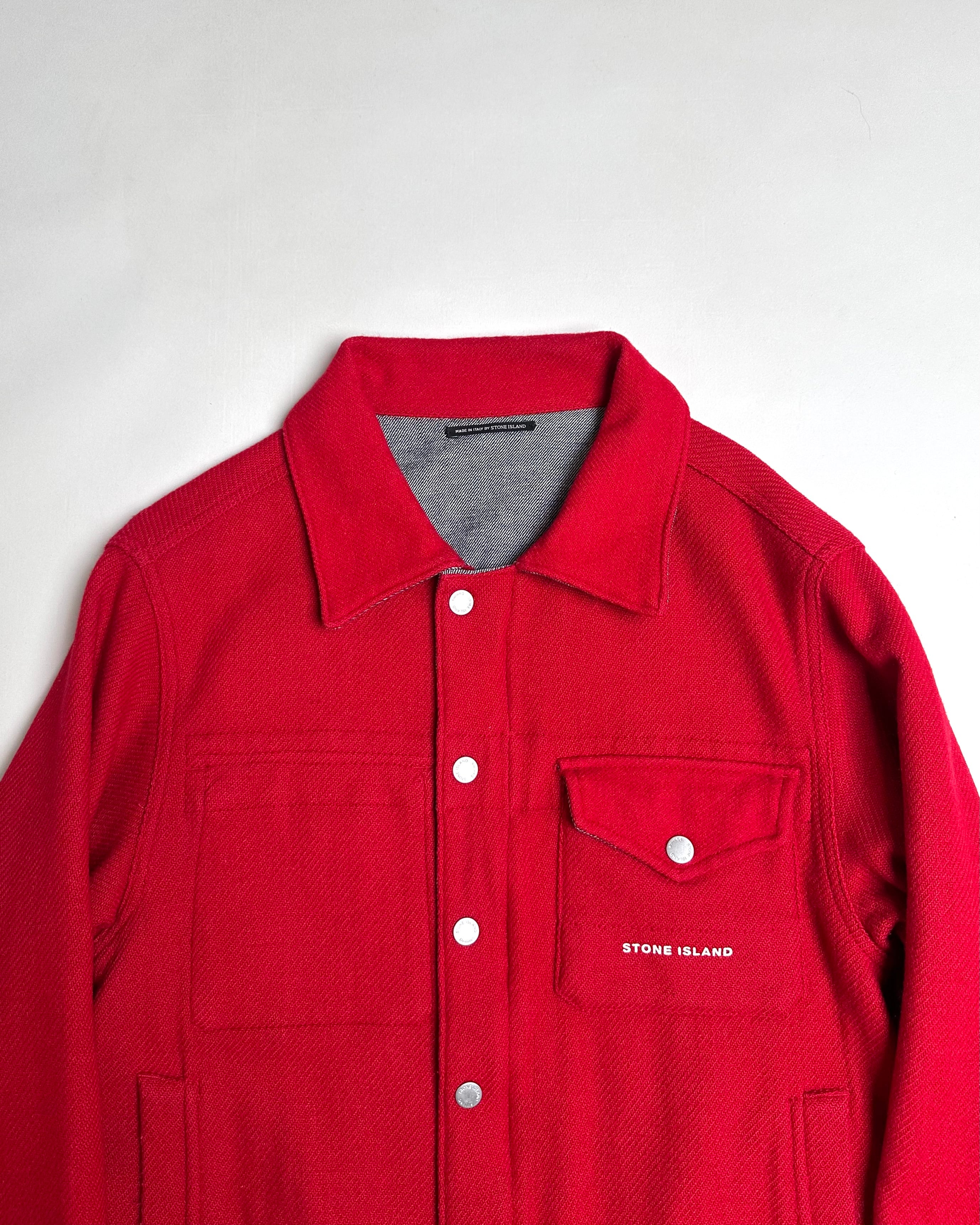 非常に柔らかな織りのウールメルトンと光沢の載ったデニム織の両A面で着用可能な"STONE ISLAND"のトラッカージャケット。