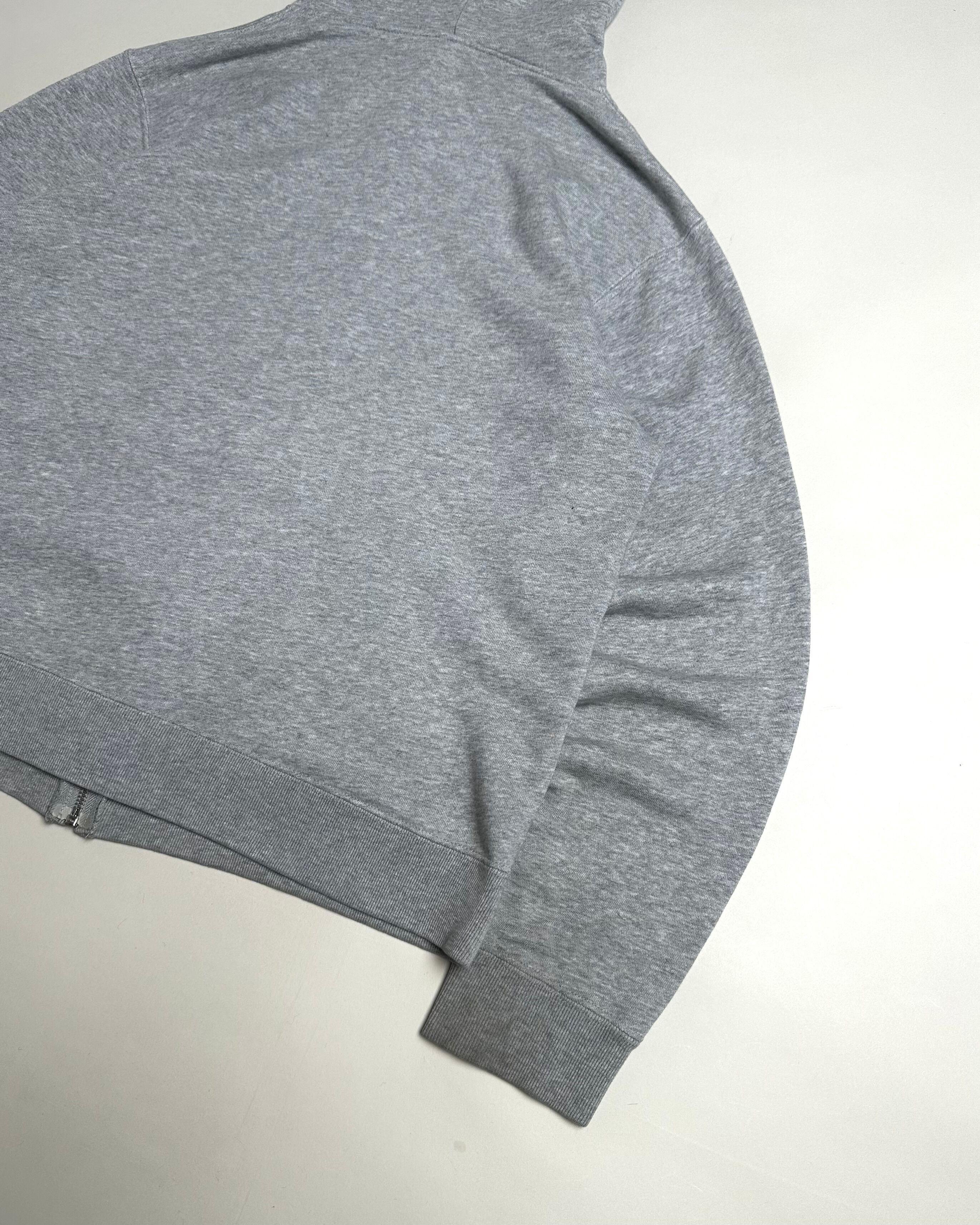 奥行きのある霜降りグレーカラーに裏起毛のない厚すぎず、薄すぎずな程よい塩梅のオンスのジップアップパーカー。