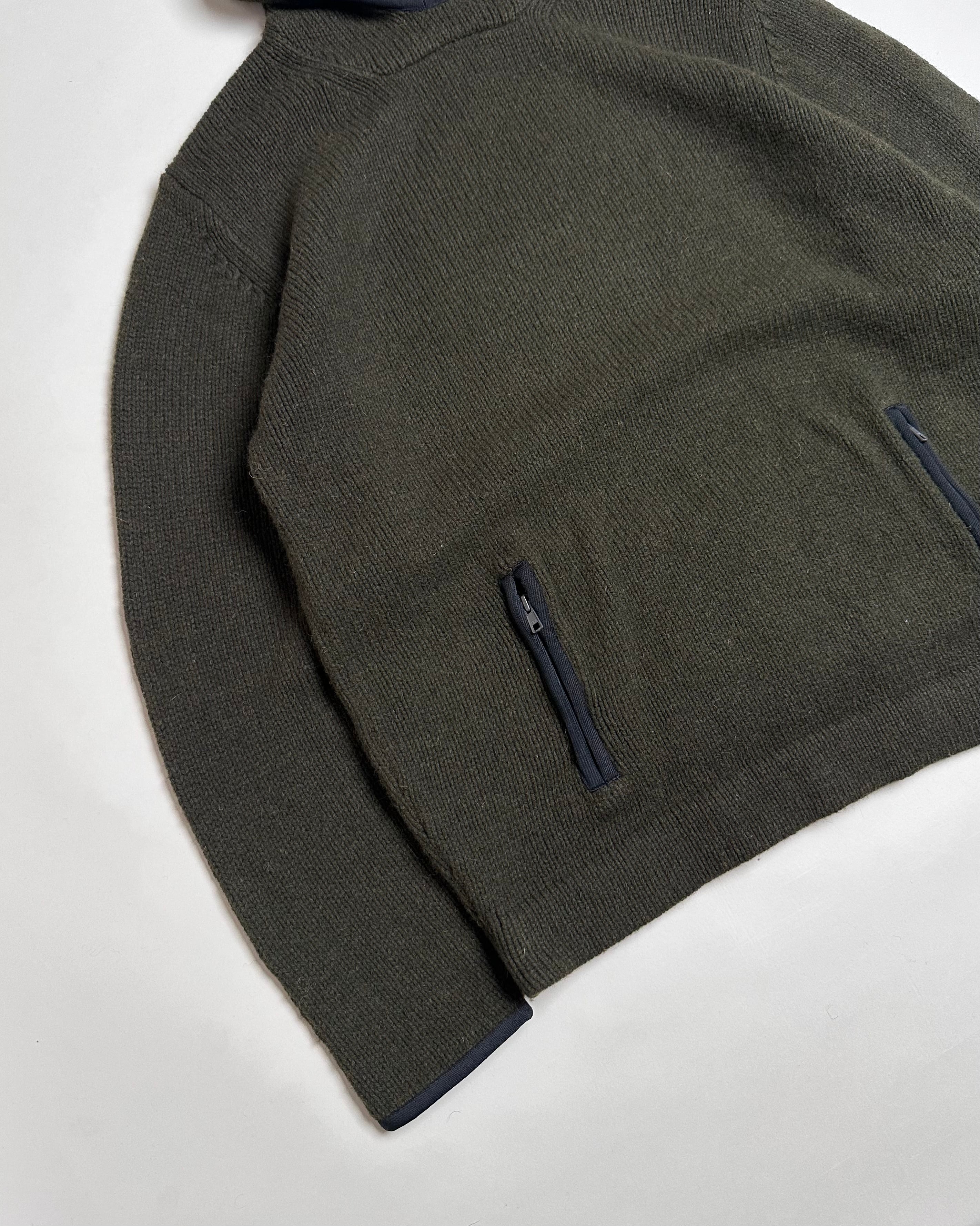 ジップアップポケット付きでテクいハイネック仕様、この年代のアイテムらしい遊びの効いたデザインが魅力的な一枚。