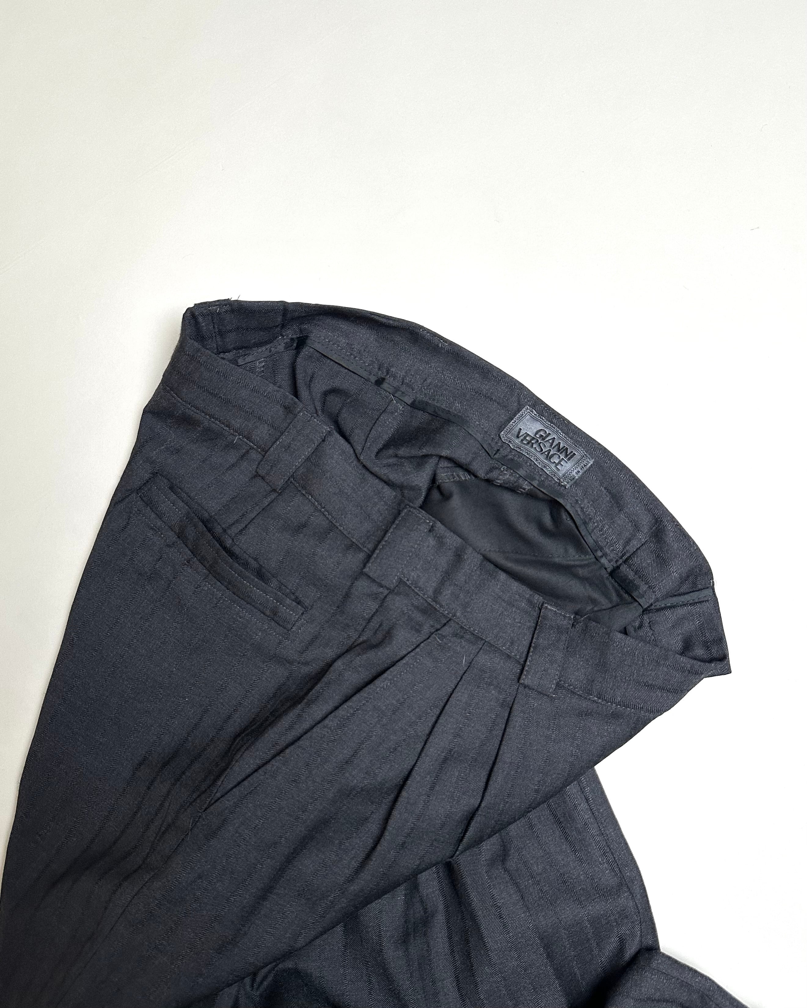 90's "GIANNIVERSACE" DRAPED STRIPE DESIGN WIDE SLACKS -MADE IN ITALY-