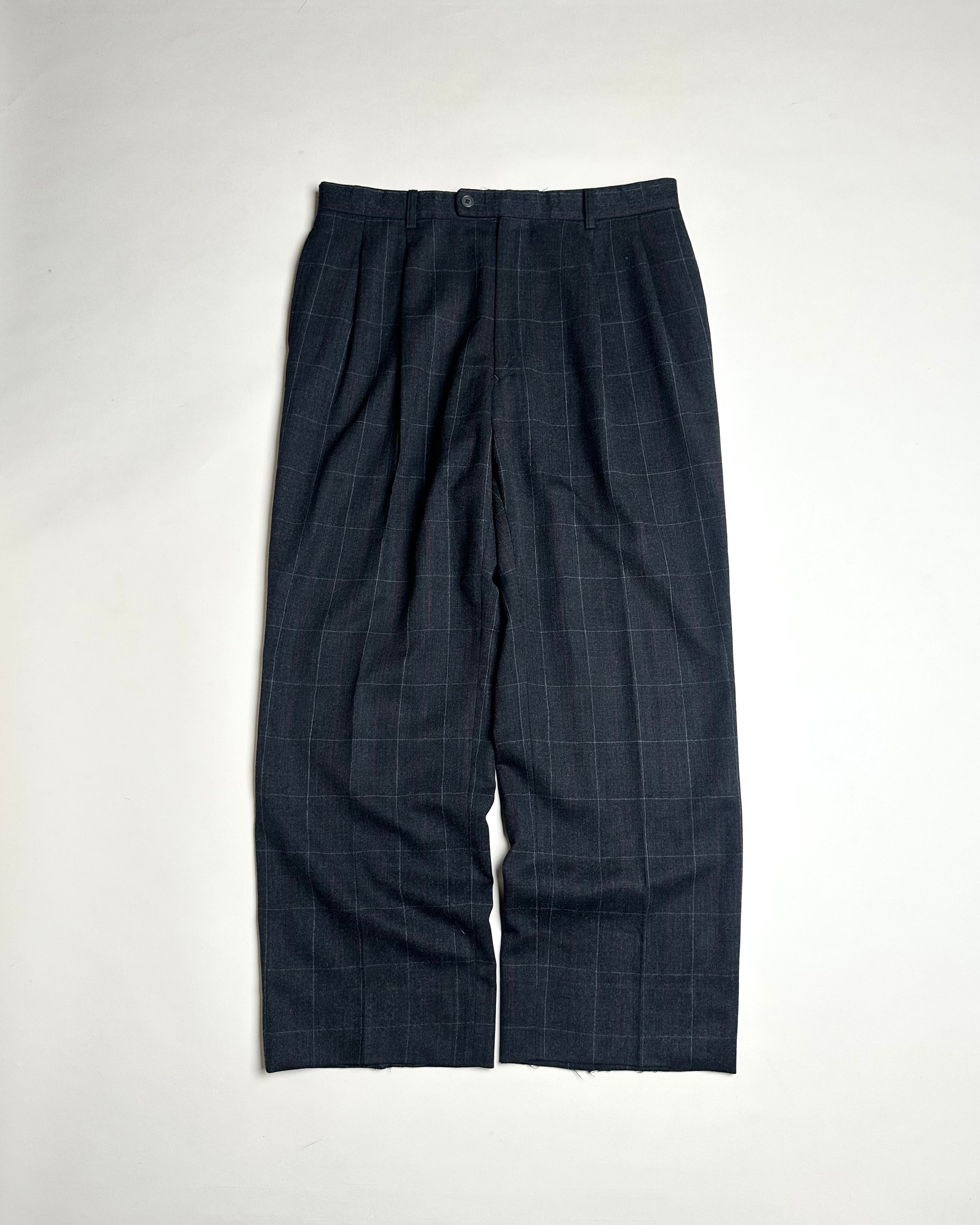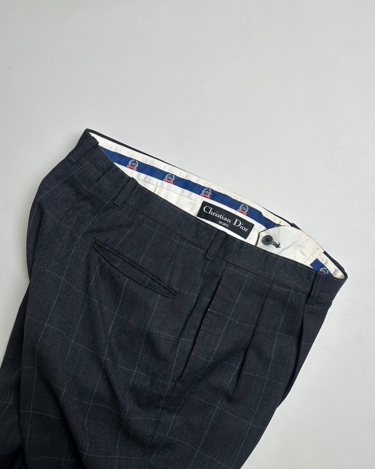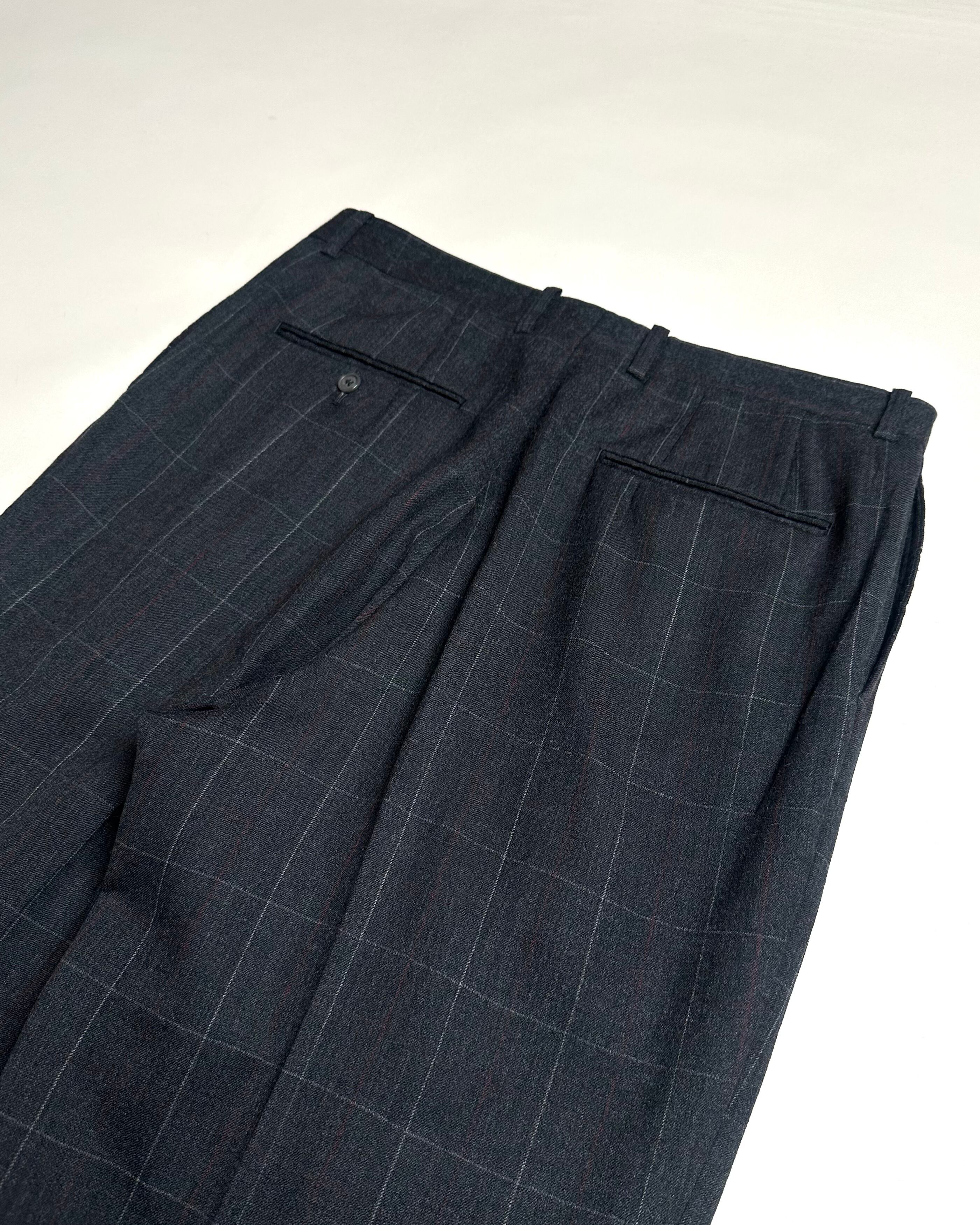 90's "Christian Dior" WINDOWPANE CHECK DESIGN WIDE WOOL SLACKS