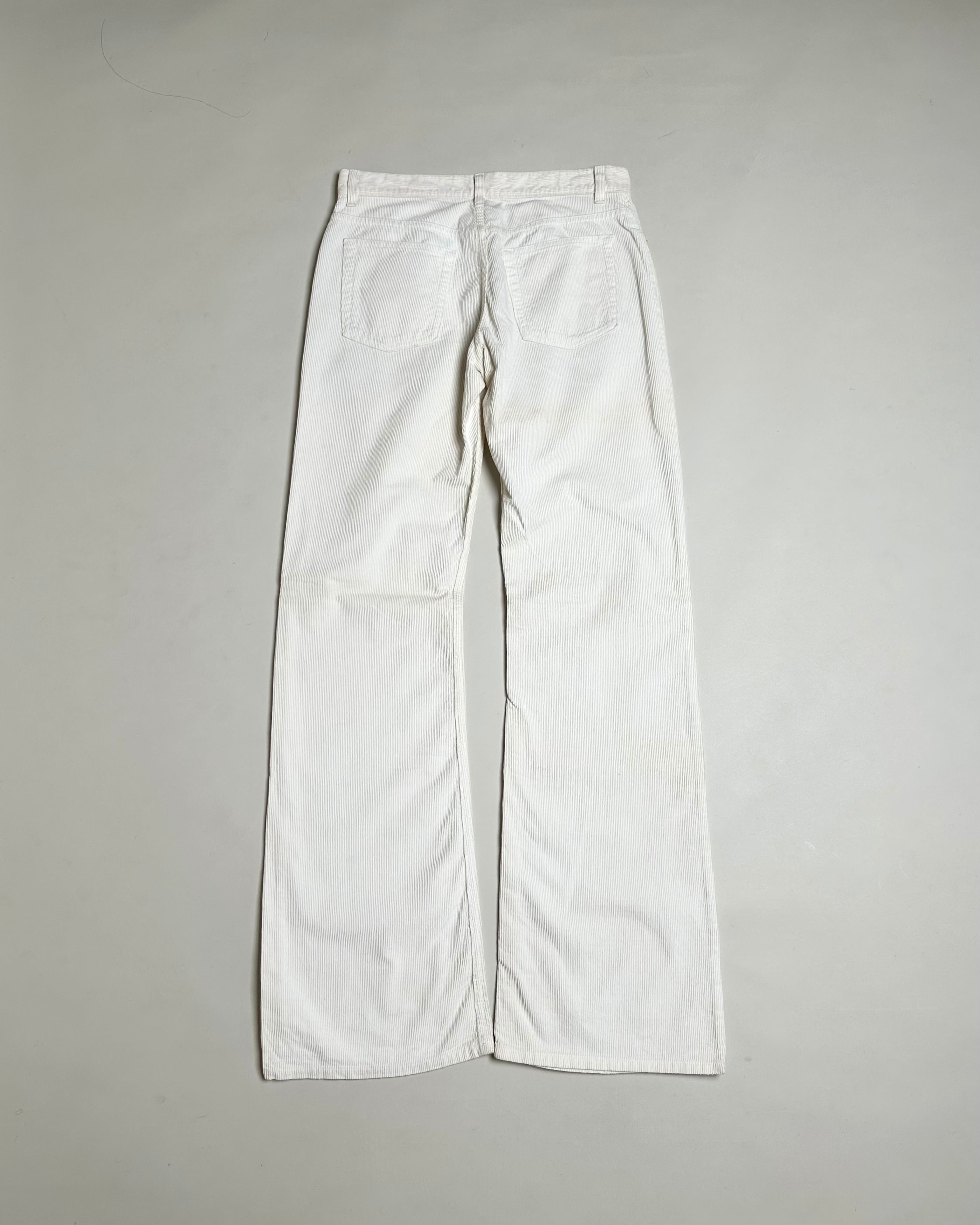 物としてありそうですなかなか見かけないオールホワイトコーデュロイ。そして裾に向かって広がった独特なスーパーバギーフレアパターン。