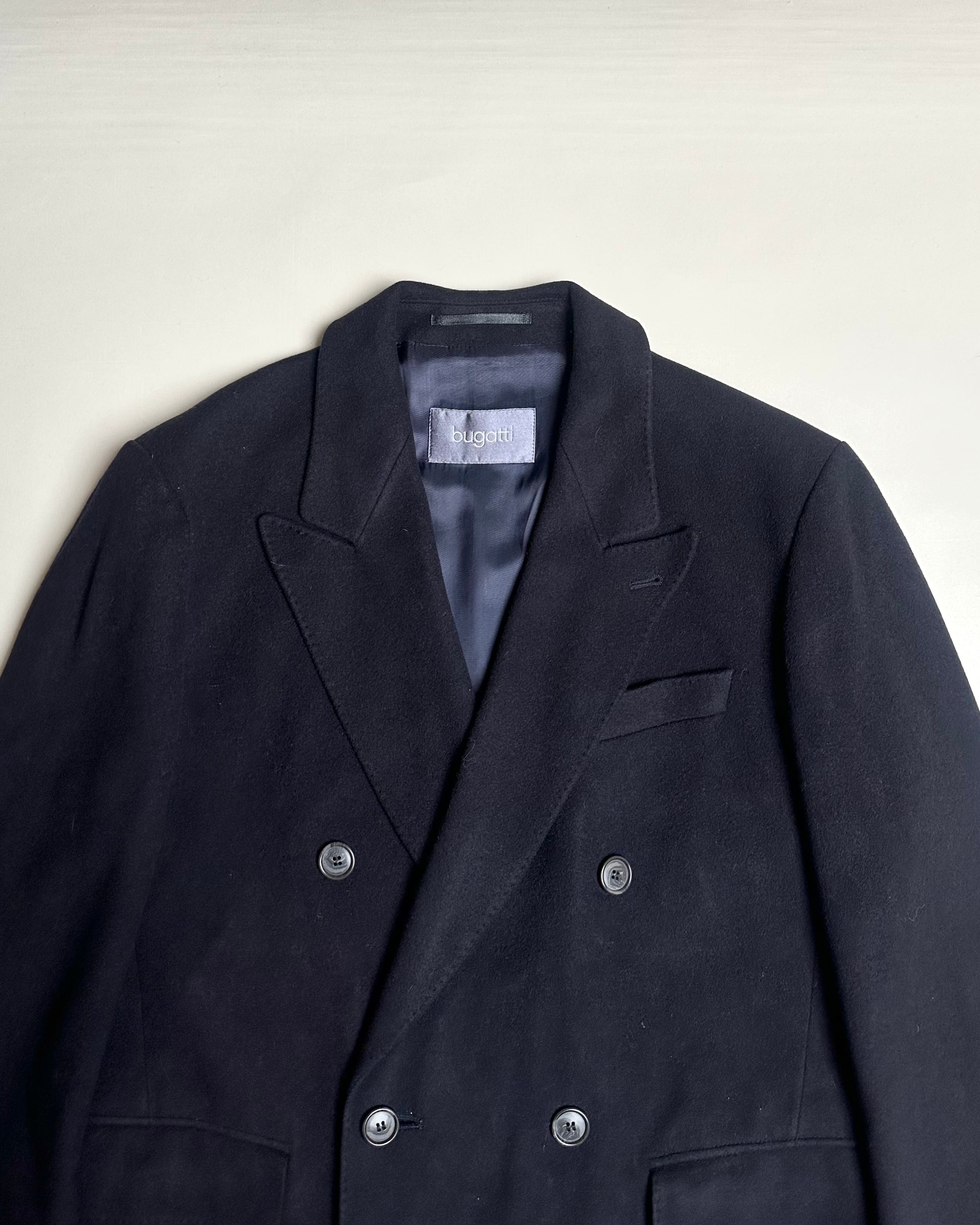 ドイツ発のドレスブランド”BUGATTI”より、非常に滑らかな肉厚カシミア100%のダブルチェスターロングコート。