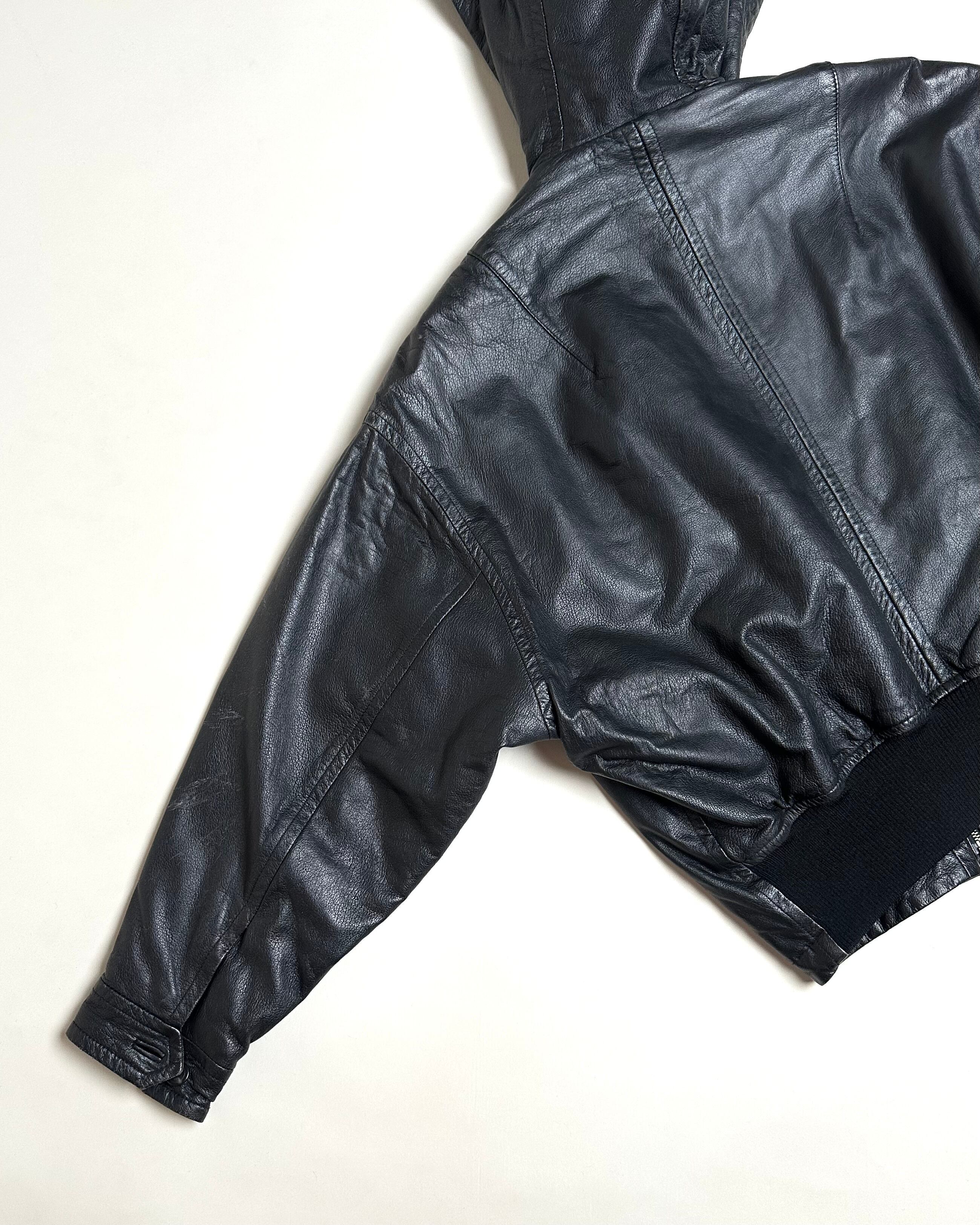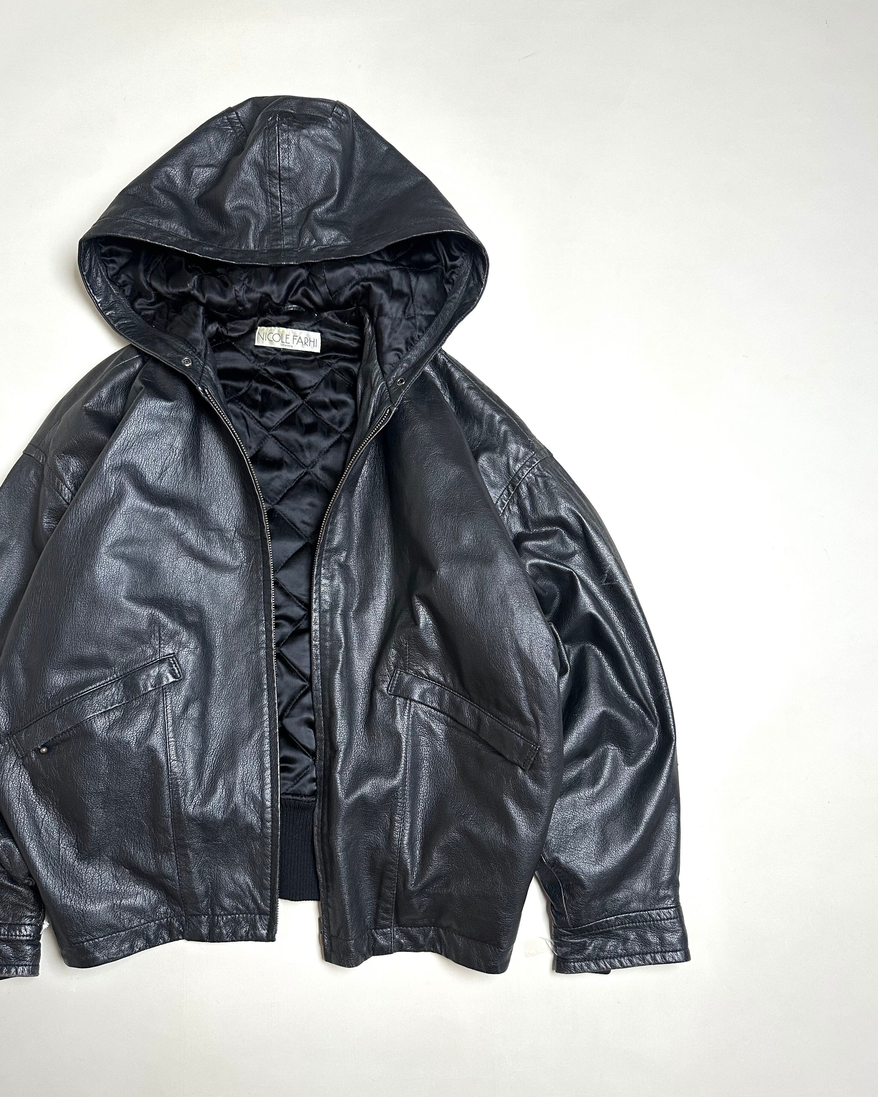 90's SHORT LENGTH LAMB LEATHER HOODED ZIPUP JACKET