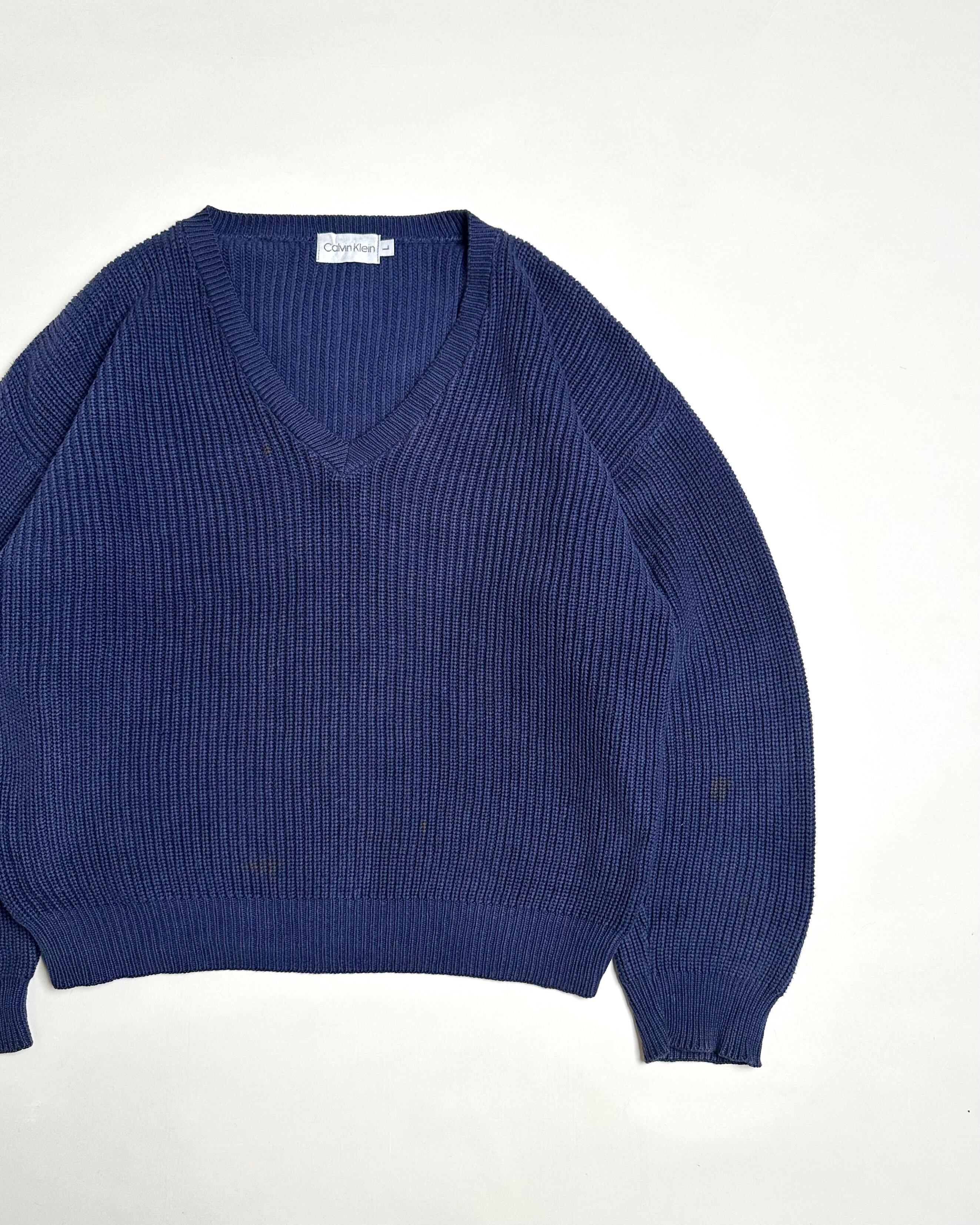 90's "Calvin Klein" COTTON V-NECK RIB KNIT -MADE IN USA-
