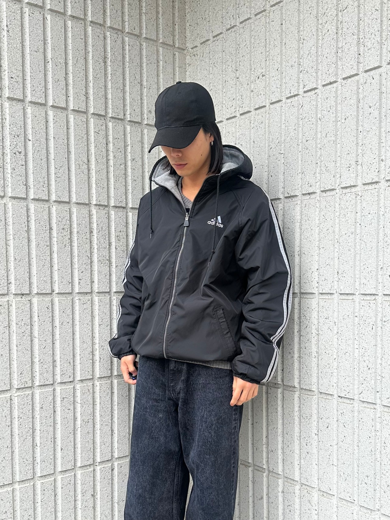 90's "adidas" REVERSIBLE NYLON×SWEAT HOODED ZIPUP JACKET