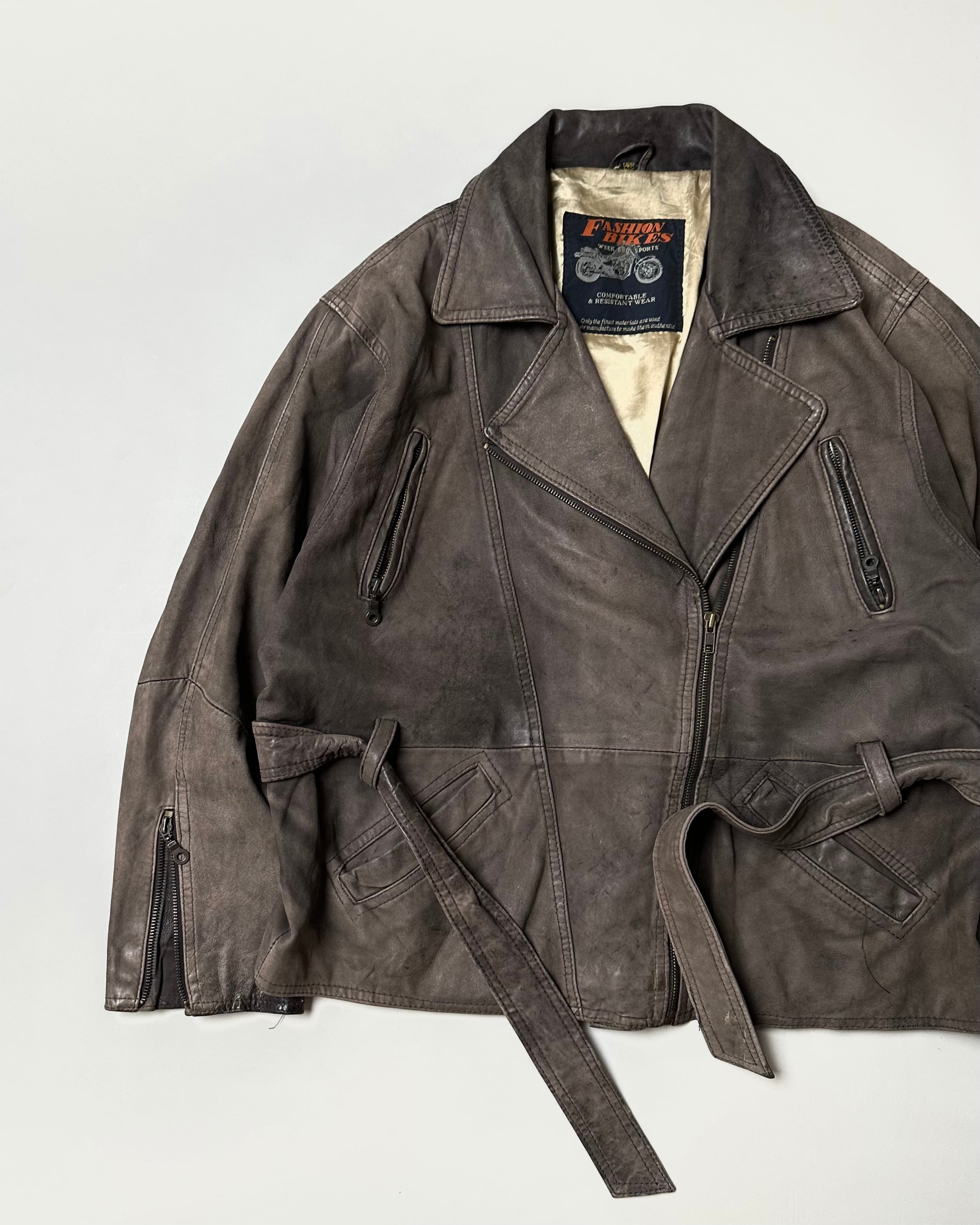 80's AMAZING FADE DOUBLE RIDERS DESIGN LAMB LEATHER JACKET -with belt-