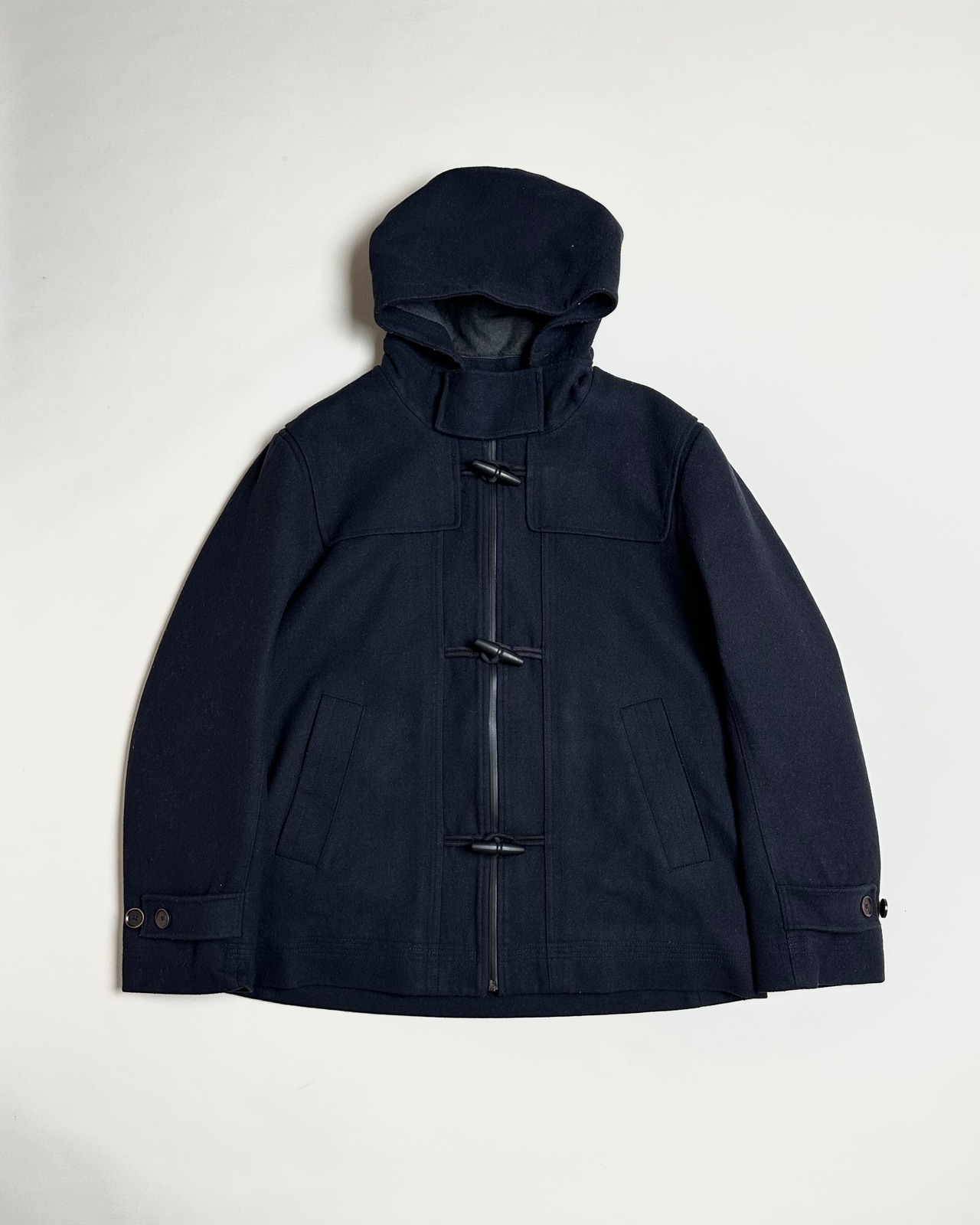 肉厚メルトンウール生地を使用した高級感のあるショートダッフルコート。