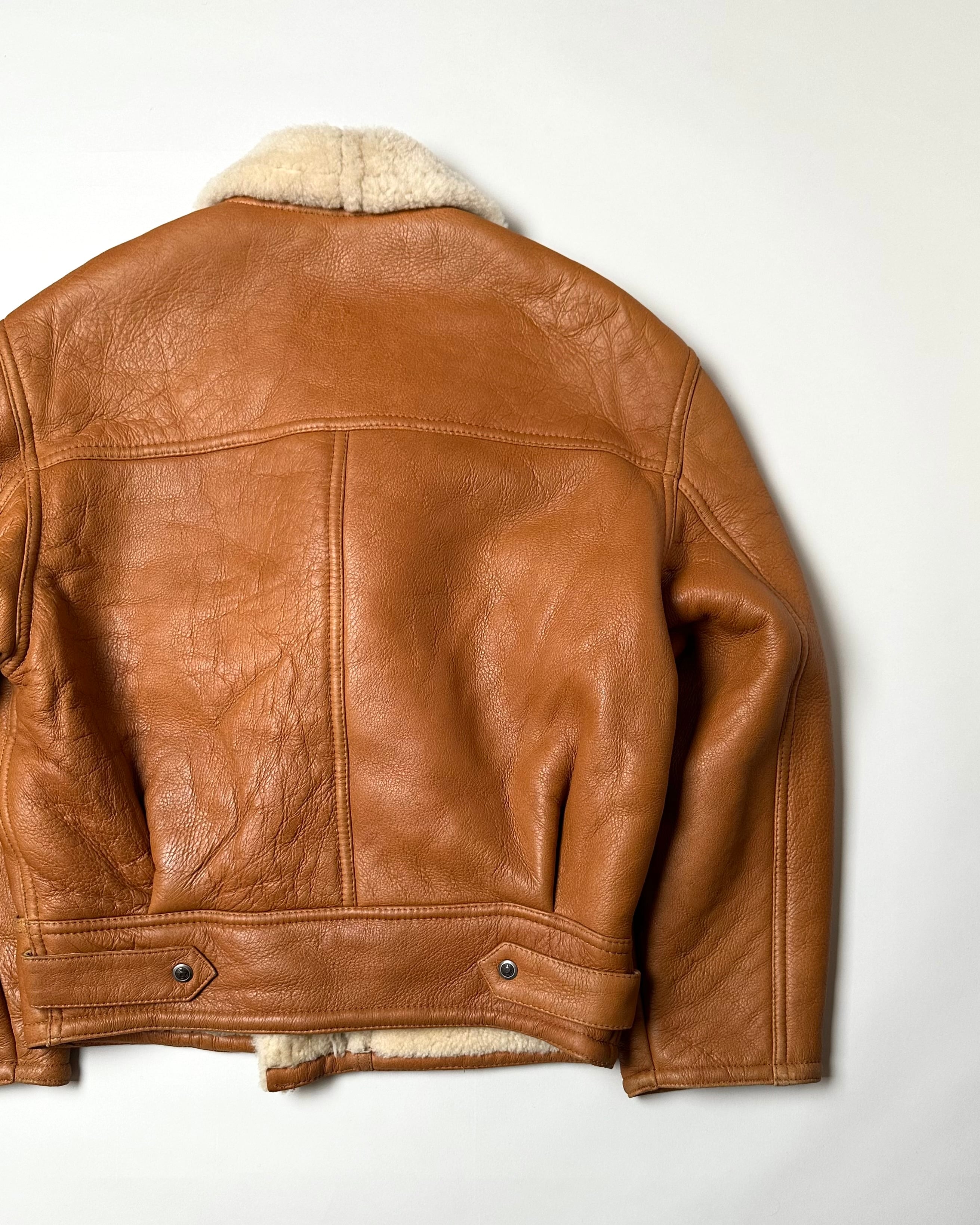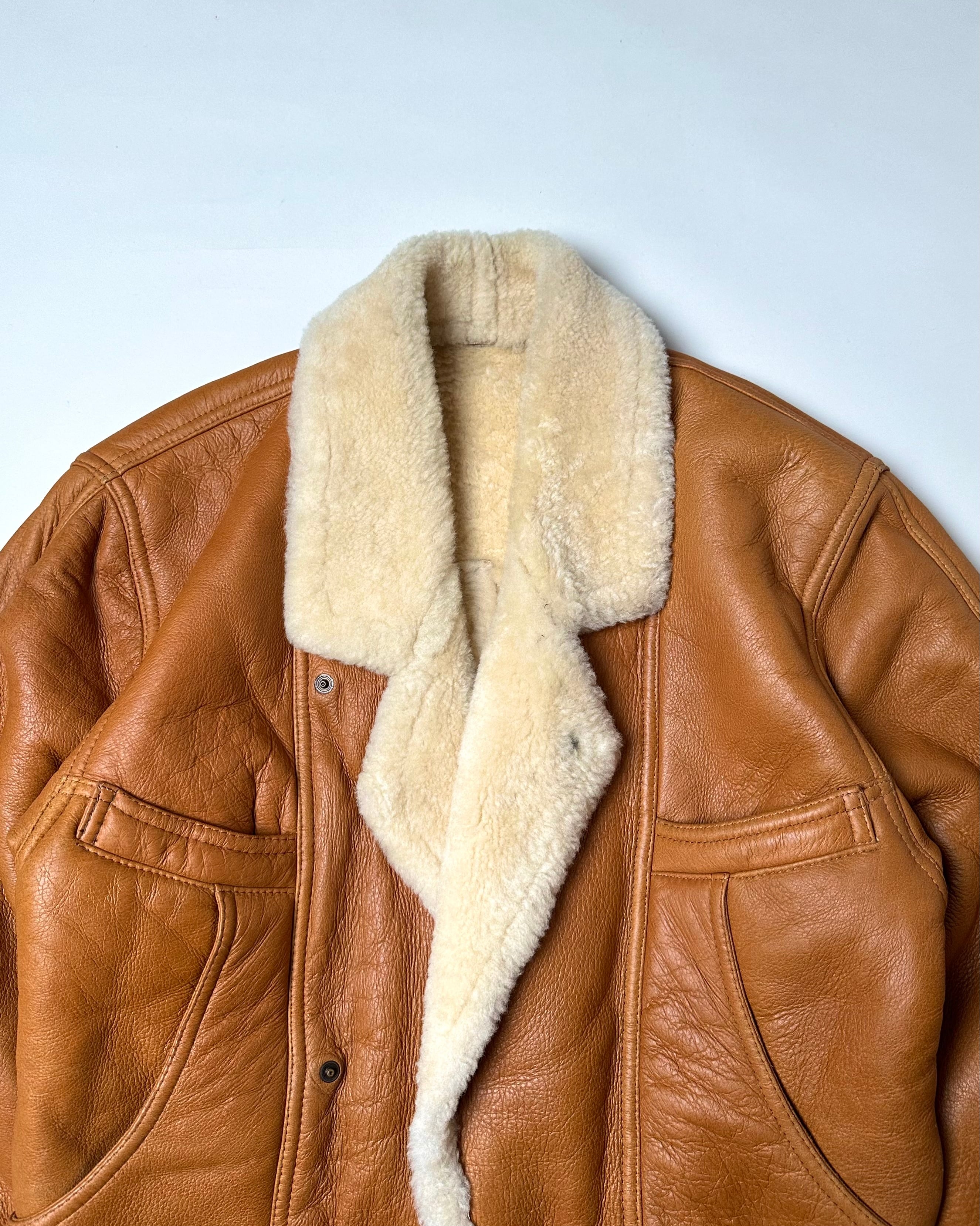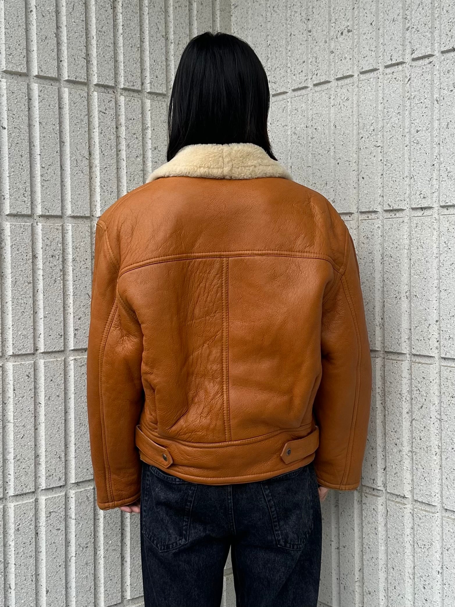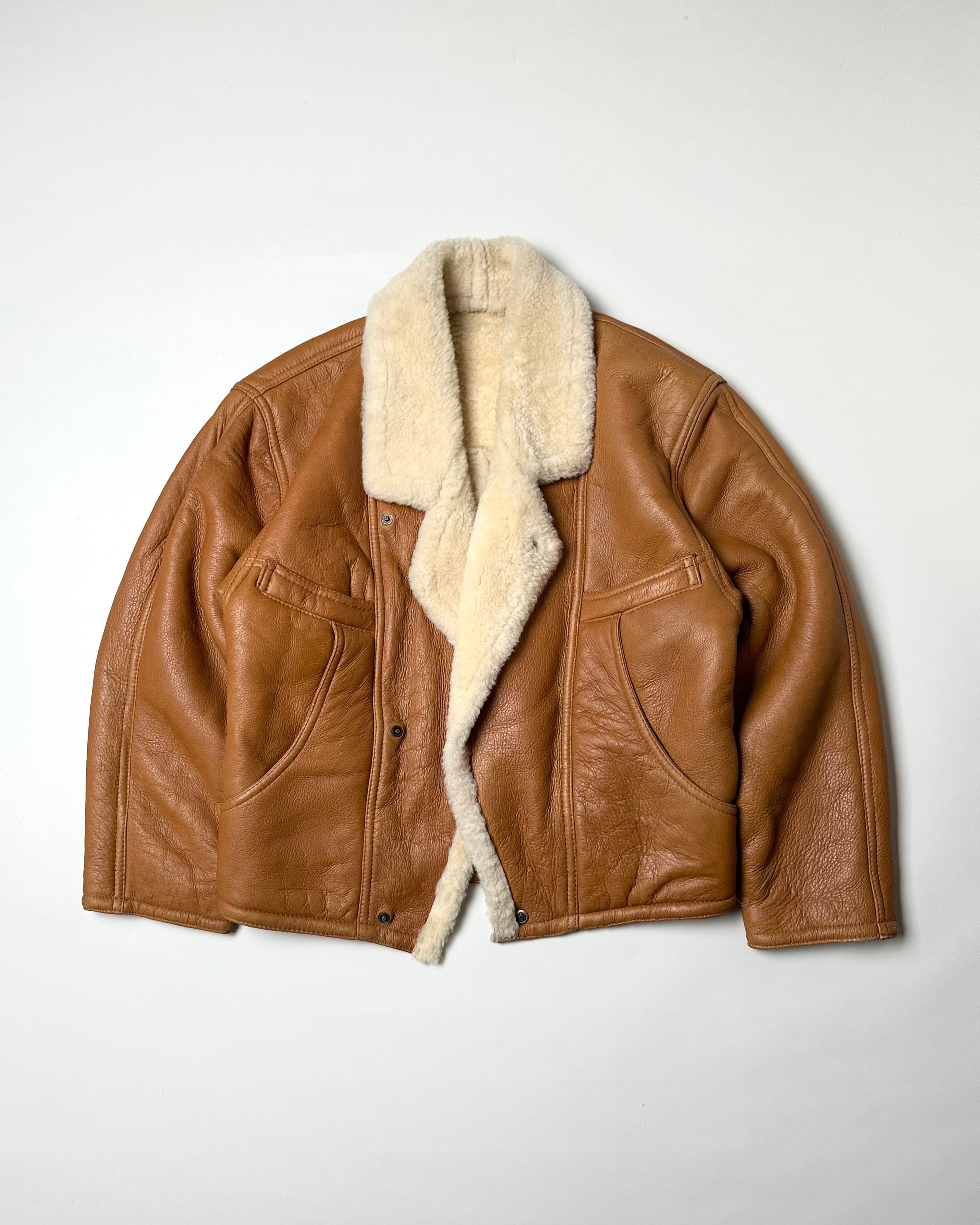 目を惹く鮮やかなキャメルカラーにとても柔らかく上質なシープスキンムートンジャケット。