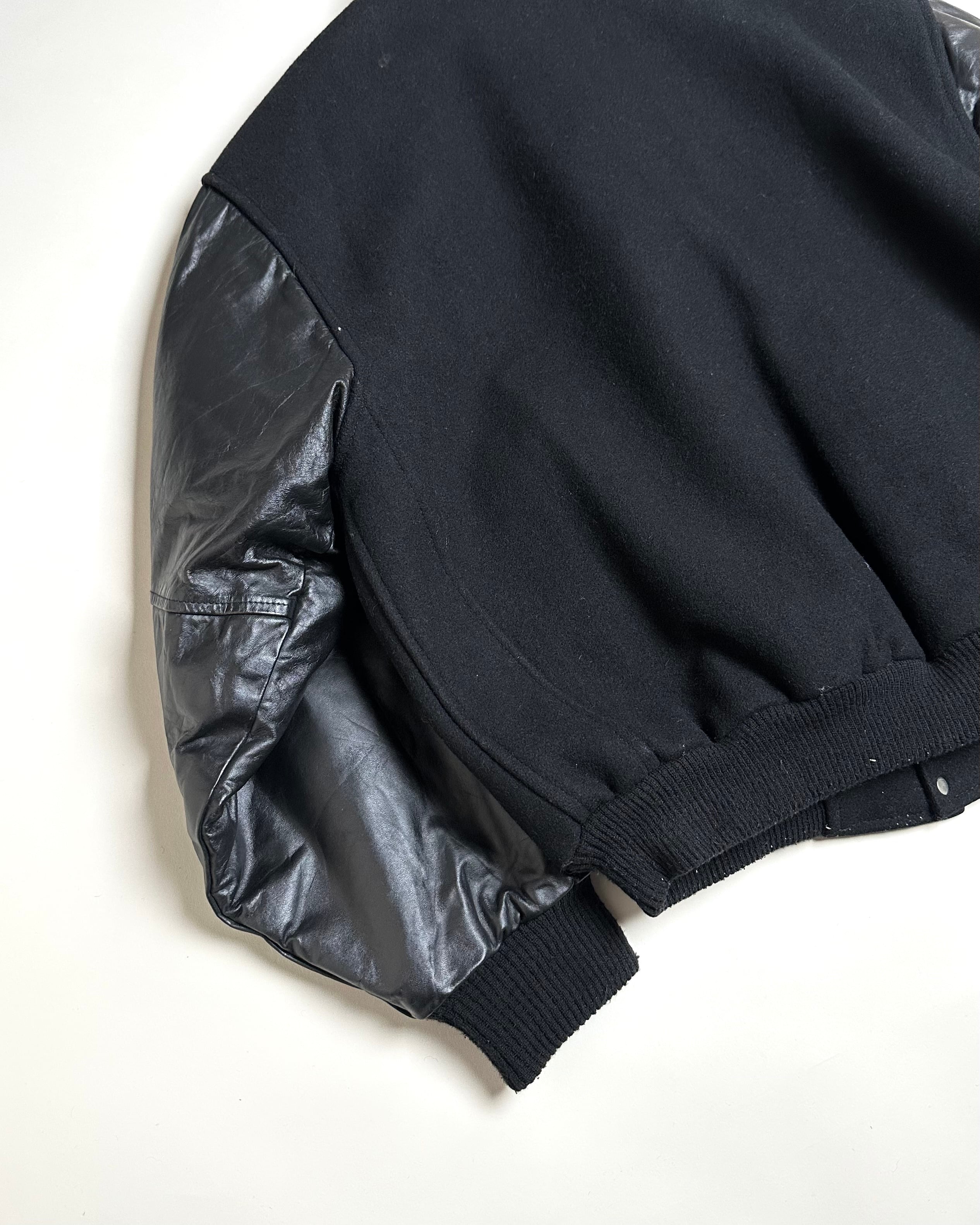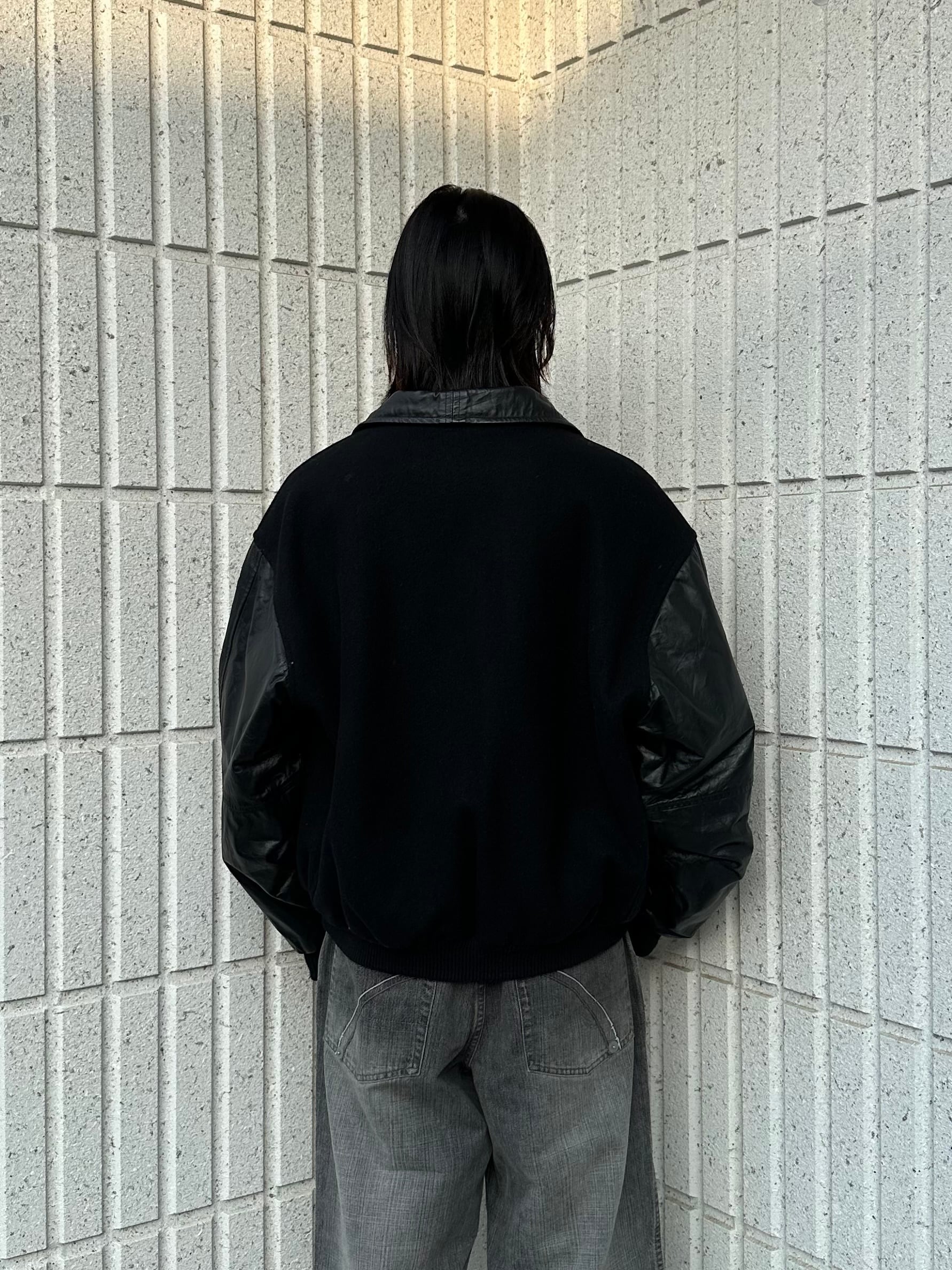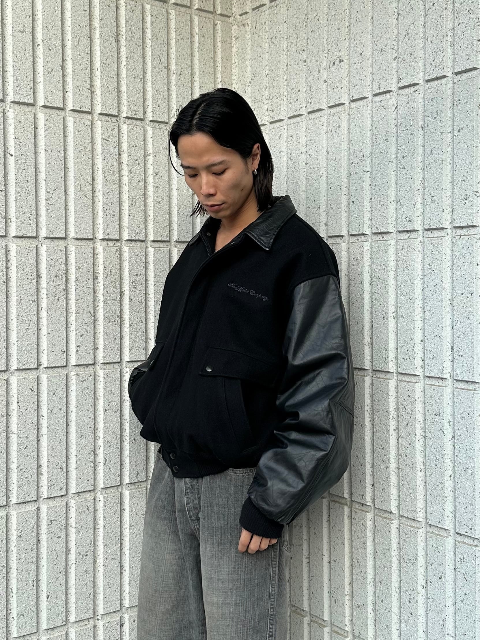 90's MELTON WOOL×LEATHER SWICHING DESIGN STUDIUM BOMBER JACKET -MADE IN USA-