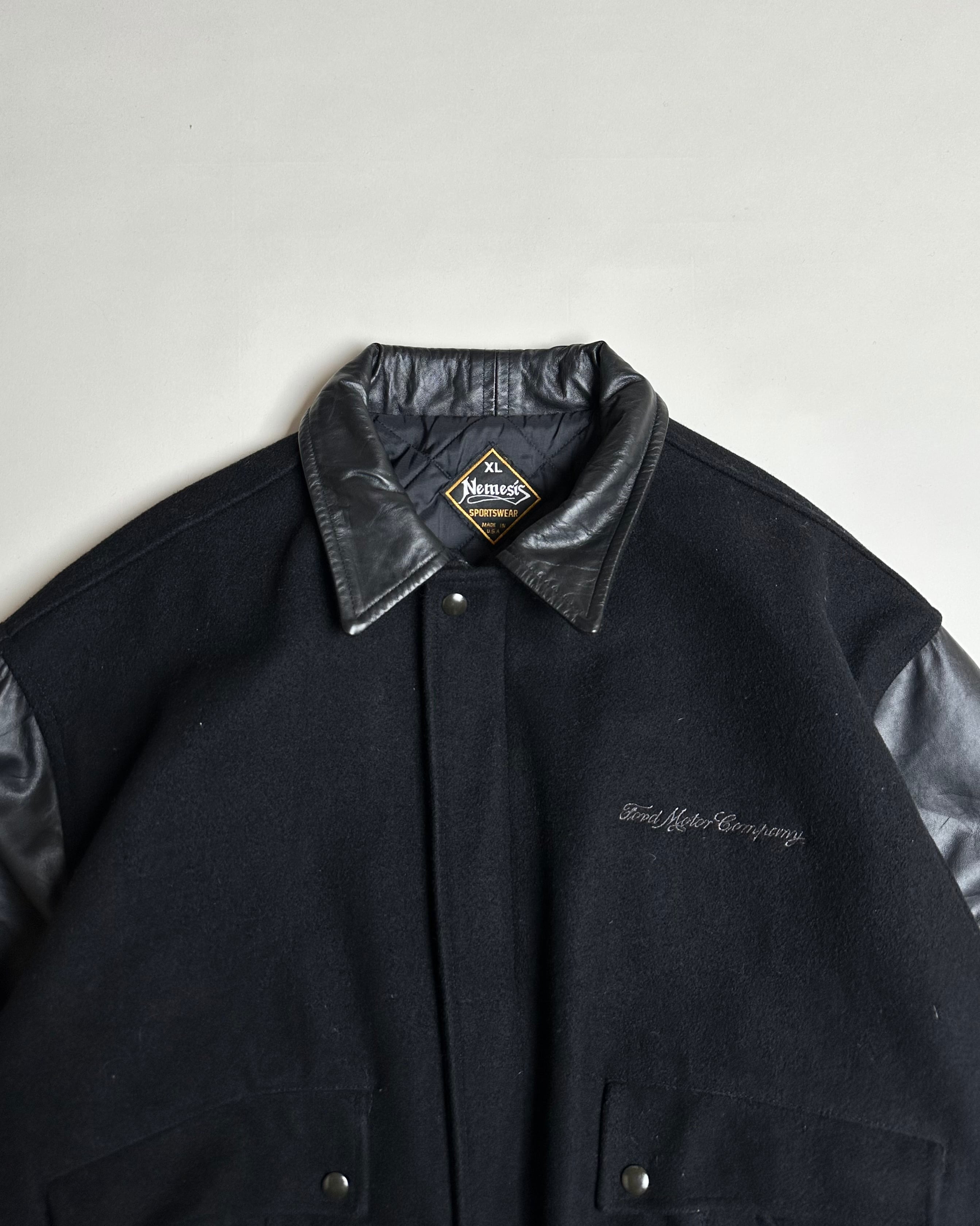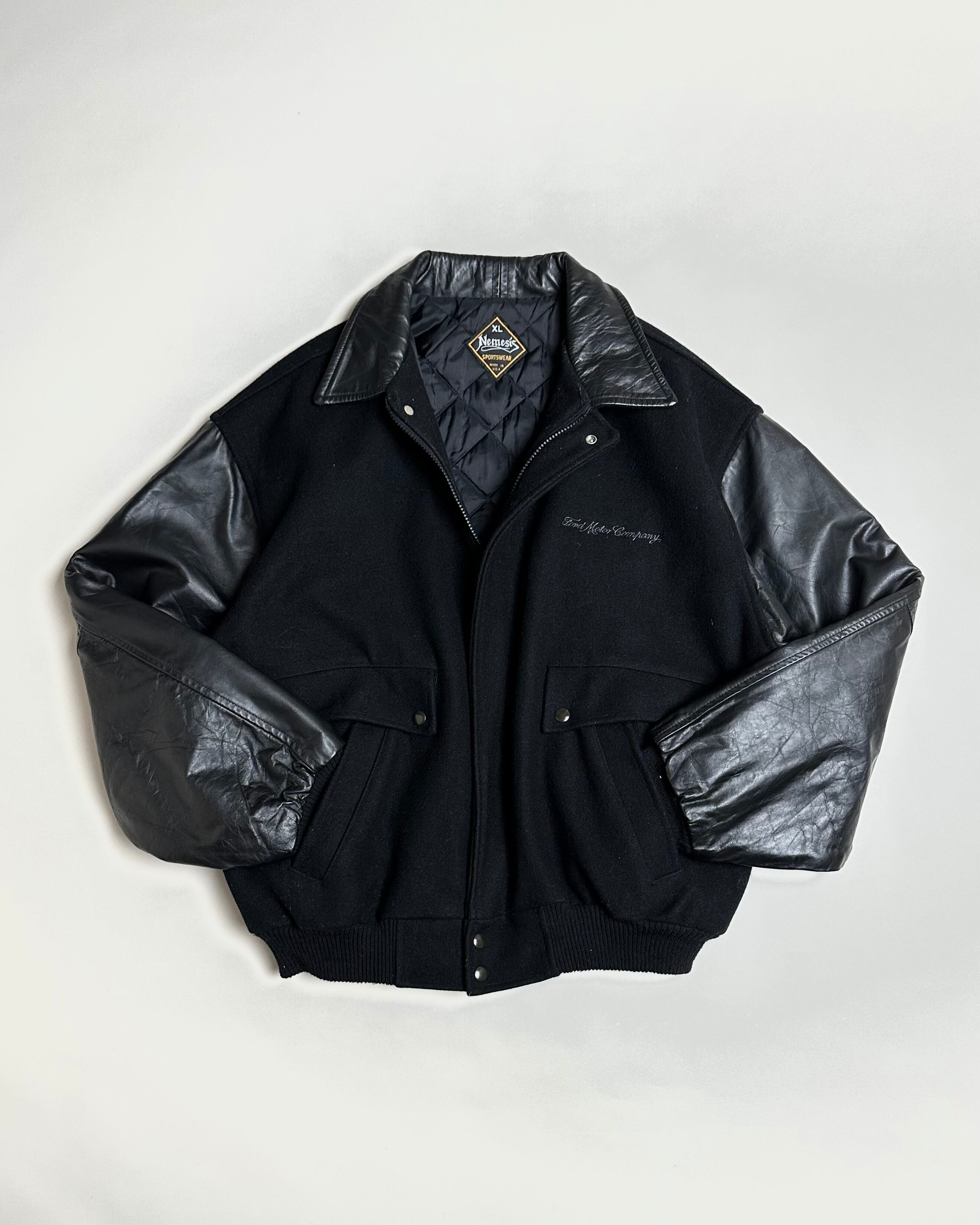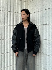 肉厚なメルトンウールとレザーでの切り替えデザインボンバージャケット。