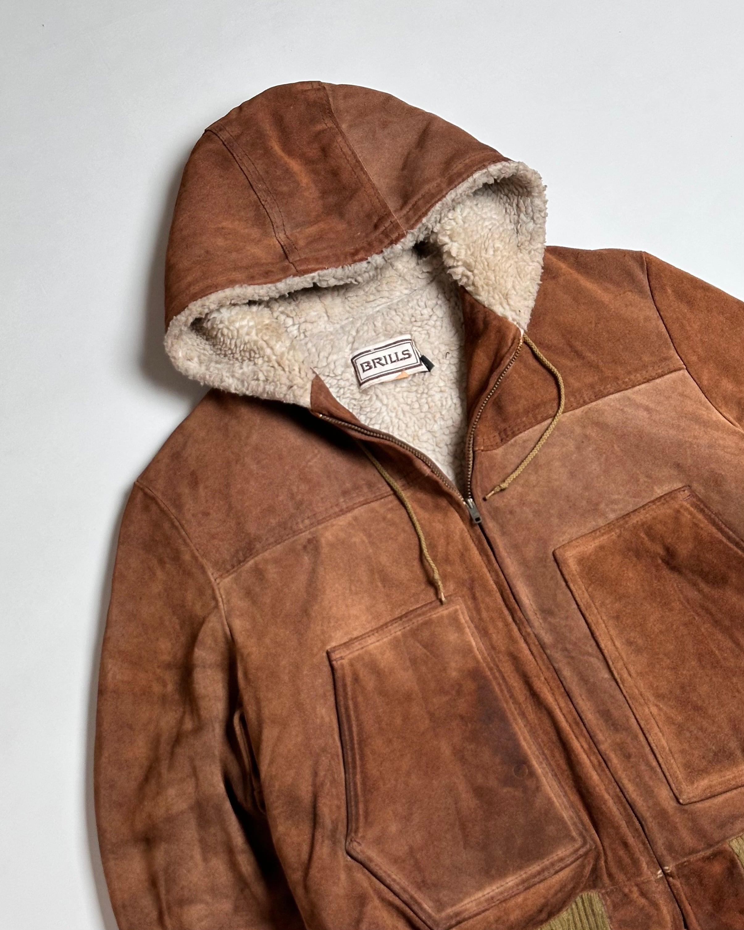 60's vintage SUEDE LEATHER BOA LINER HOODED JACKET