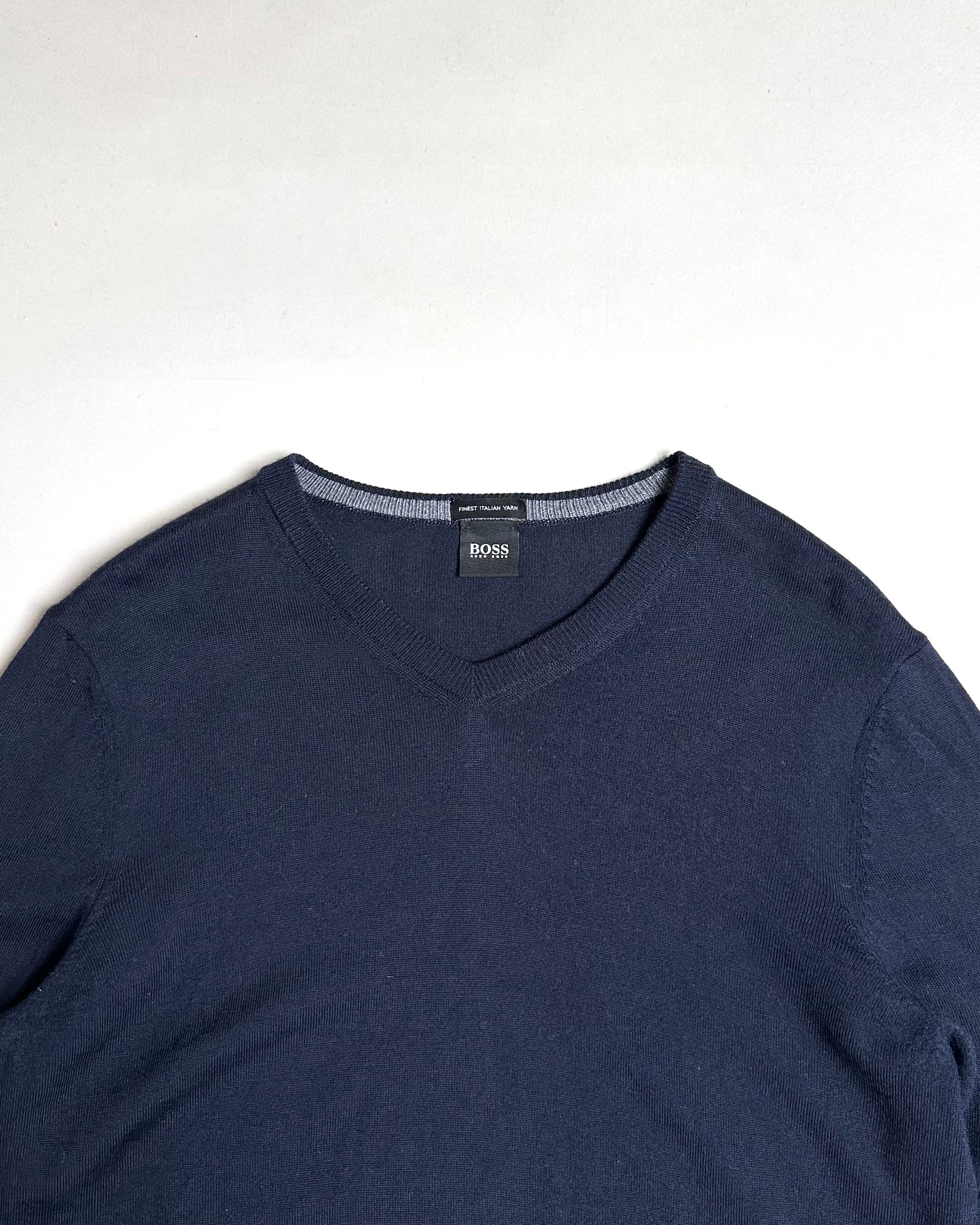 "HUGOBOSS" HIGH GAUGE V-NECK WOOL KNIT -FINEST ITALIAN YARN-
