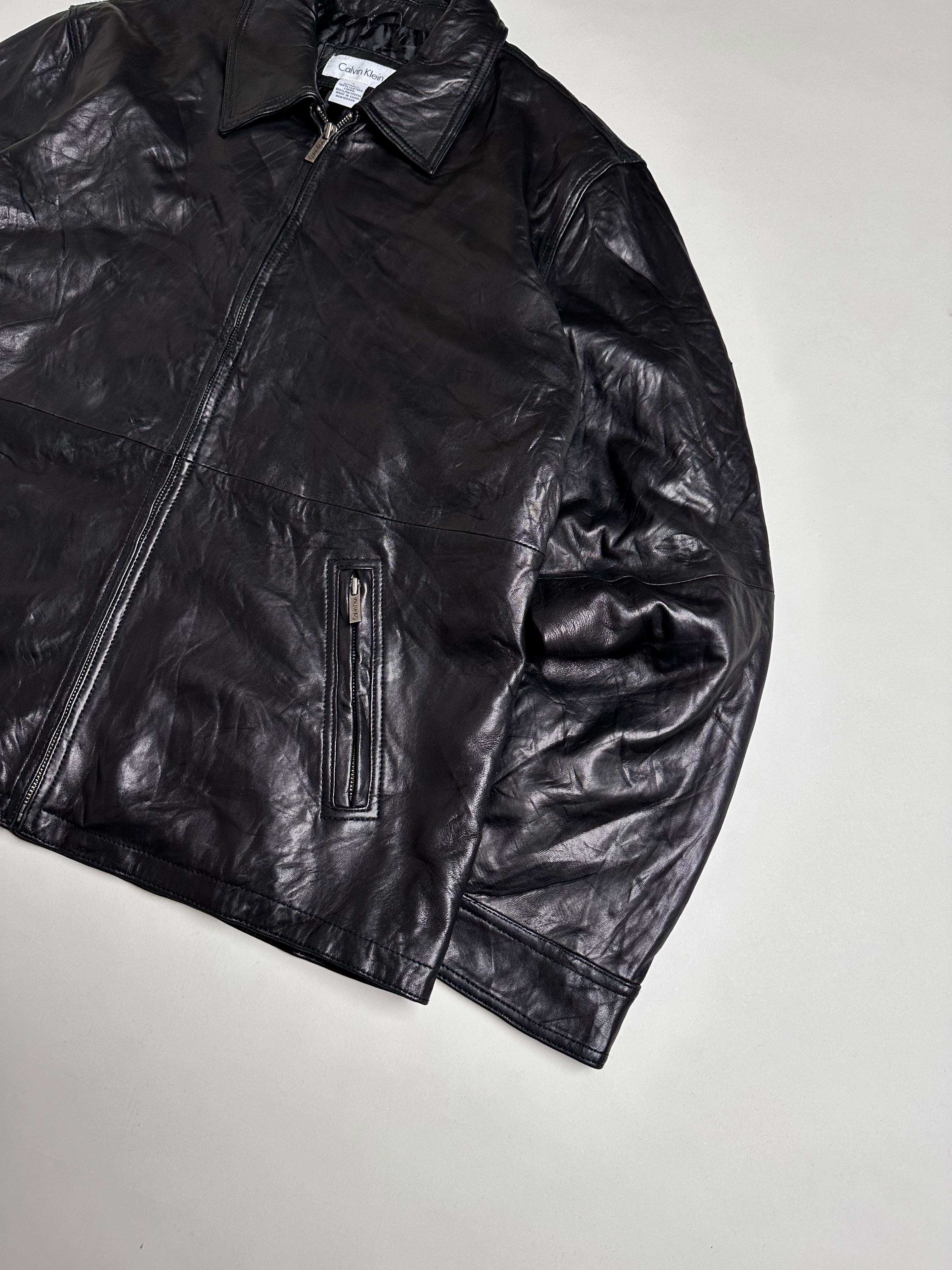 肉厚でモチっと柔らかな上質なラムレザーを使用した"CalvinKlein"の名作ジップアップレザージャケット。