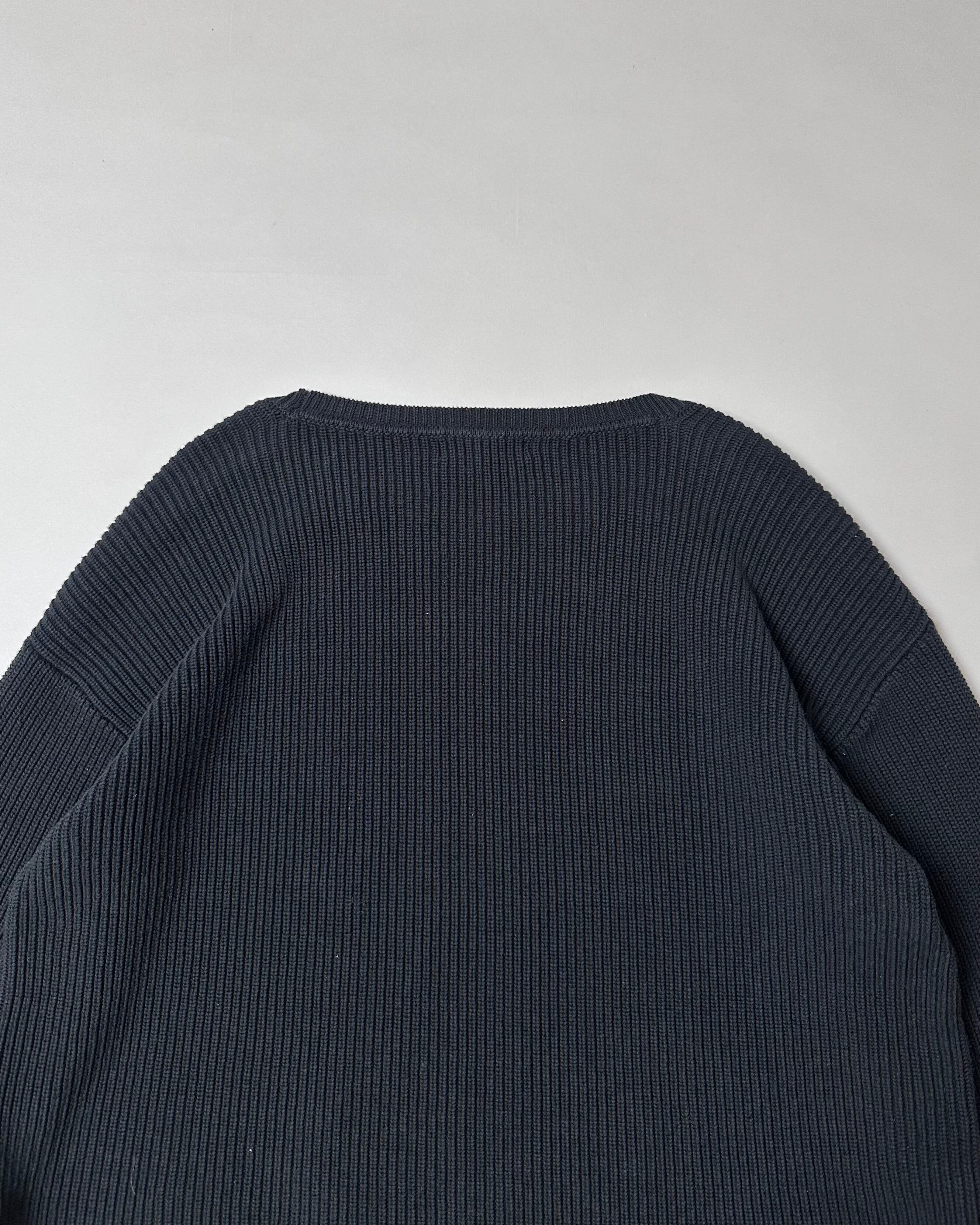 ゆったりと広めに設定されたネックラインとリブ編みによる身体のラインに沿って綺麗に落ちる素晴らしいシルエット。