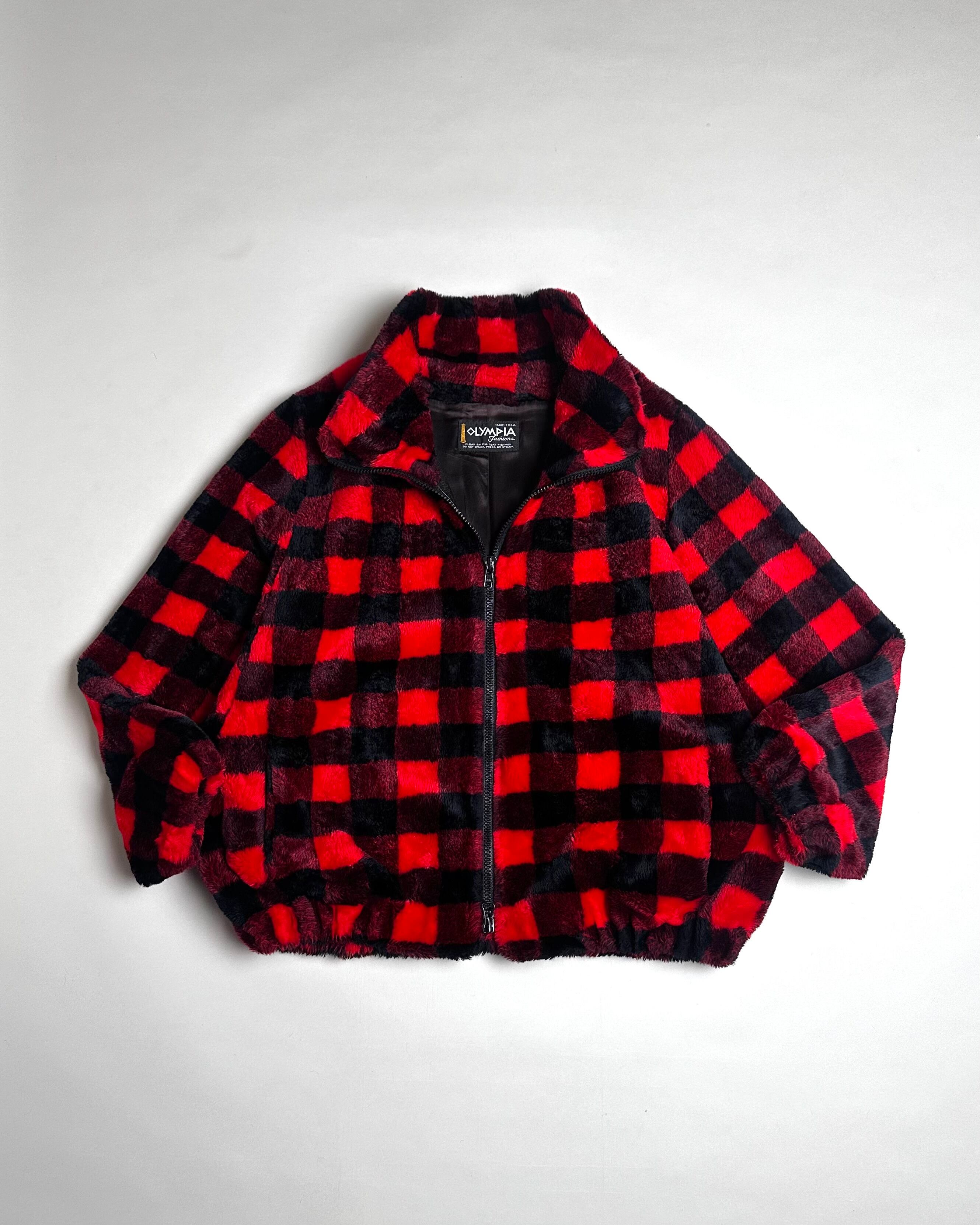 80's BUFFALOCHECK DOLMAN SLEEVE×DOUBLE ZIP HIGHNECK JACKET -MADE IN USA-