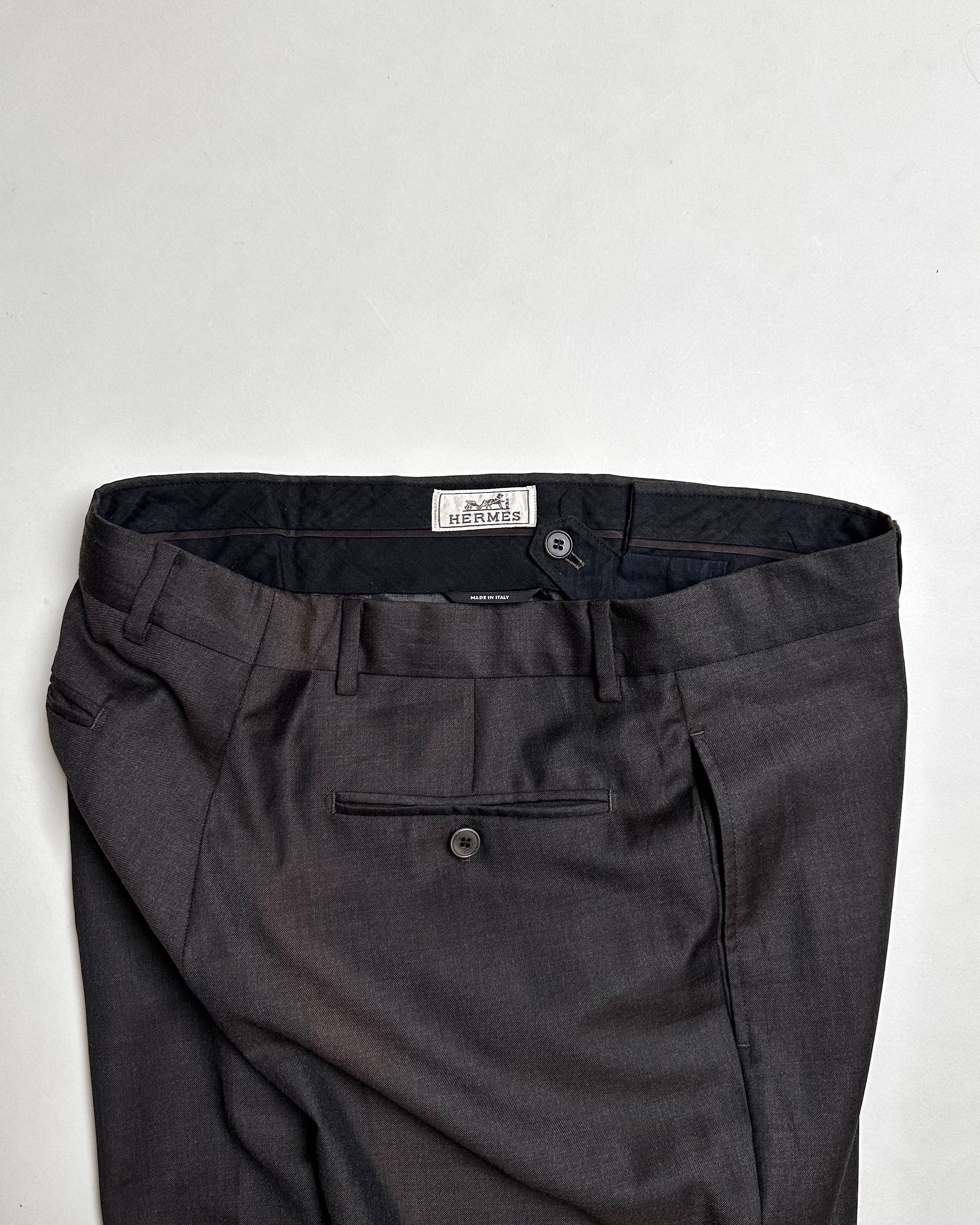 "HERMES" DRAPED GLOSSY COLOR WIDE SLACKS -MADE IN ITALY-