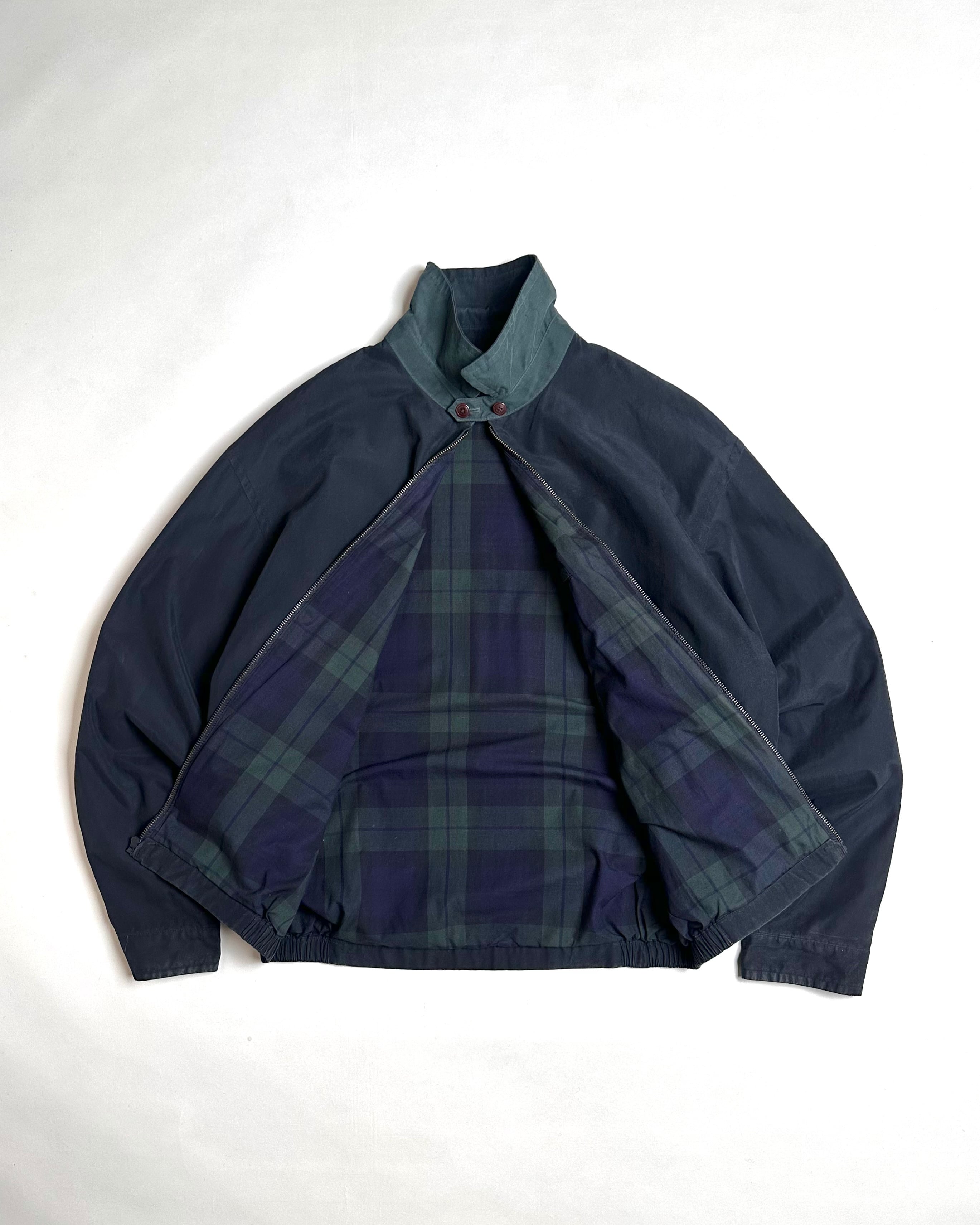 この年代らしいゆったりとしたサイジングに裏地から覗くブラックウォッチデザインライナー。
