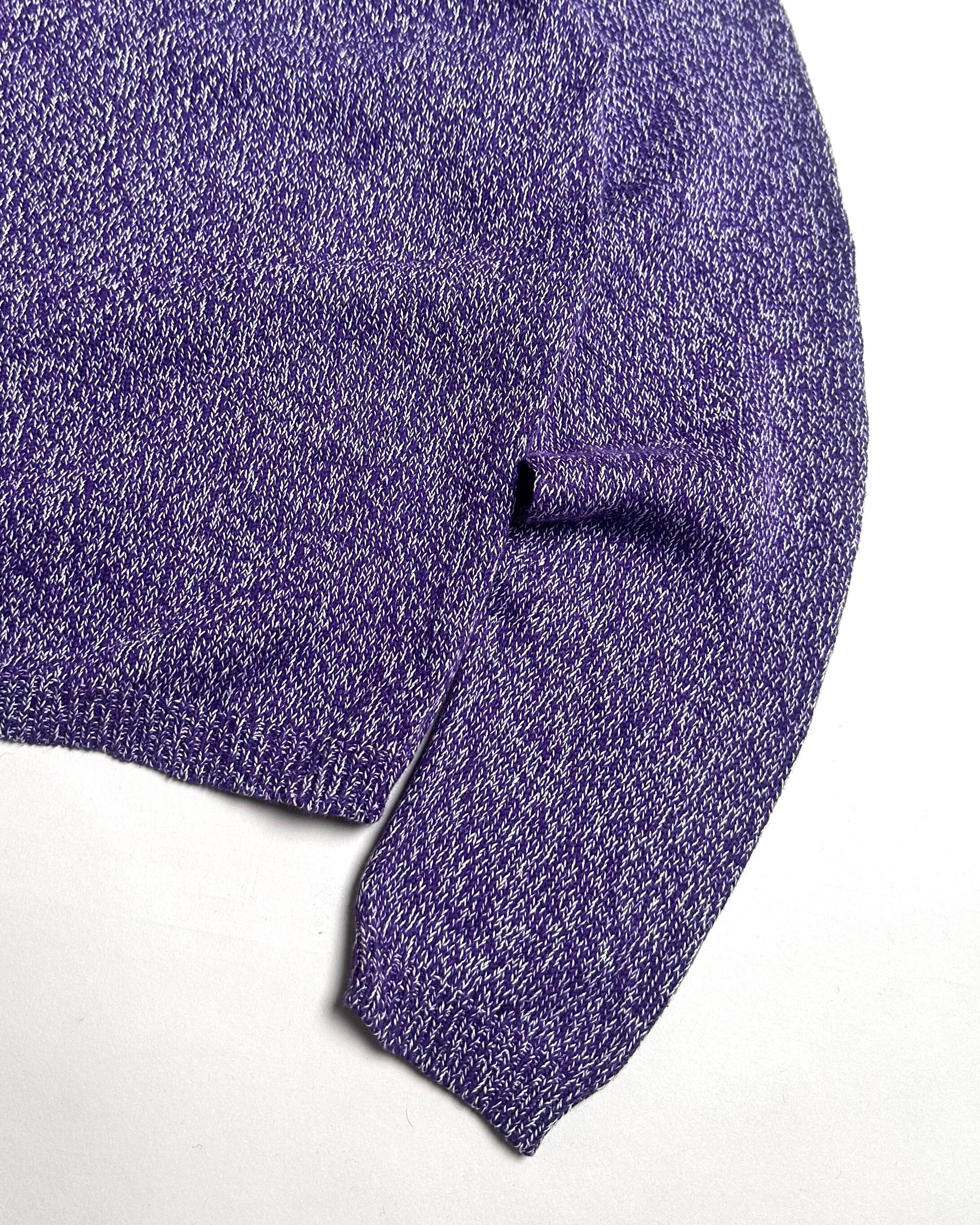 コットン×リネンブレンドの淡いパープルに白の糸を混ぜたメランジニットデザインジップアップシャツジャケット。