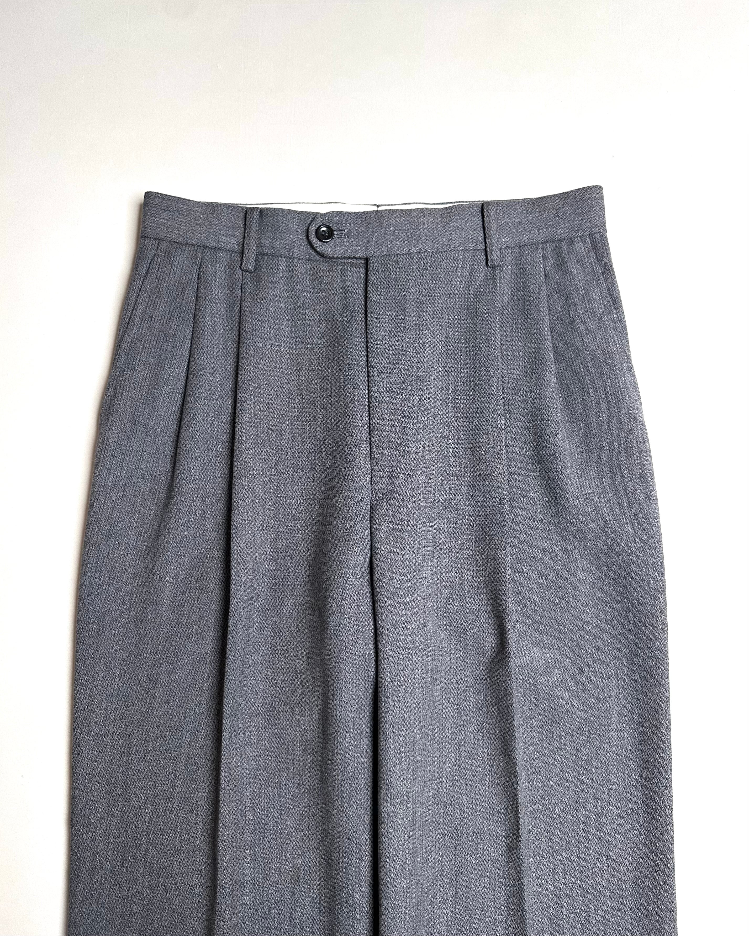90's "KENZO HOMME" DRAPED WIDE WOOL 2-TUCK SLACKS