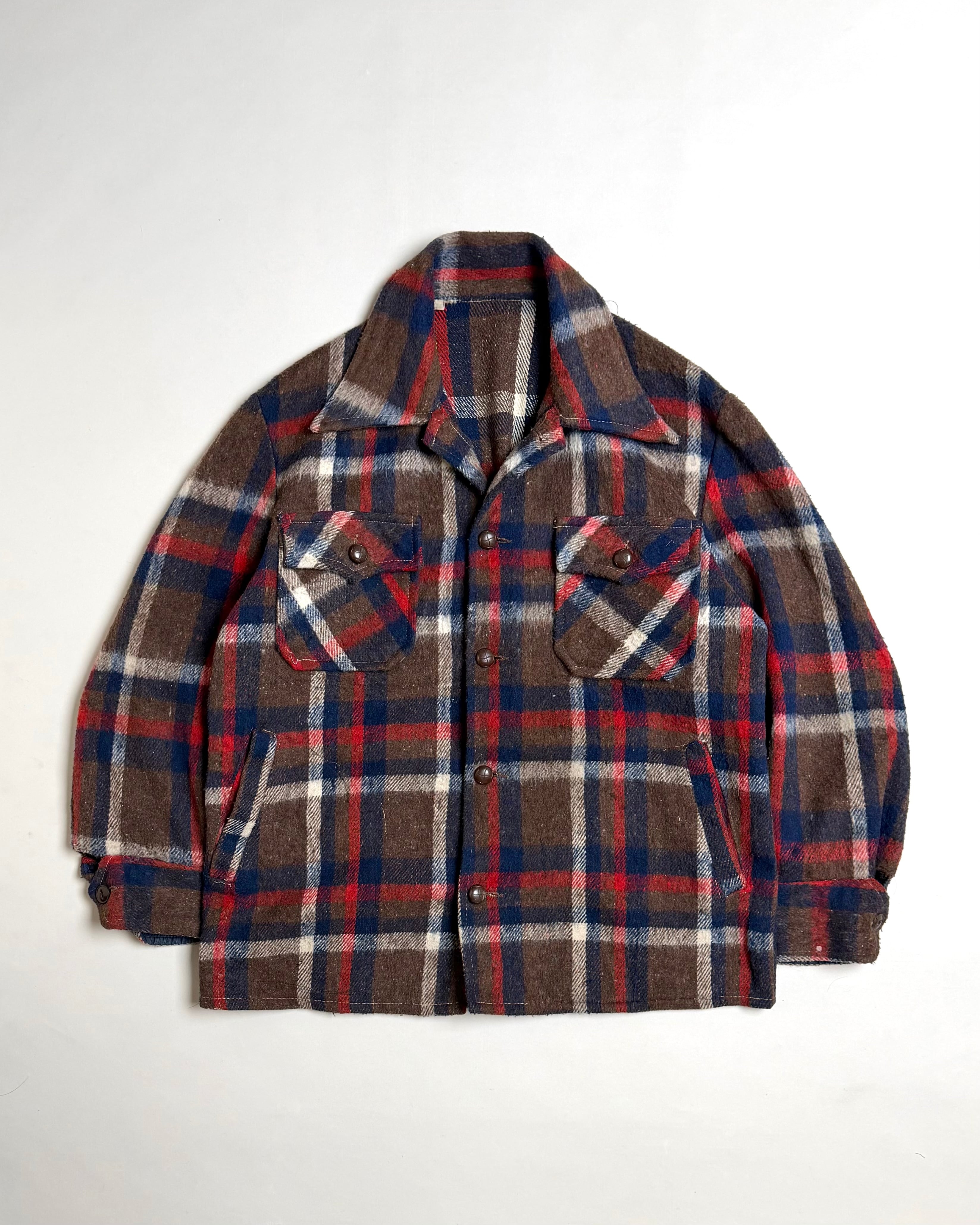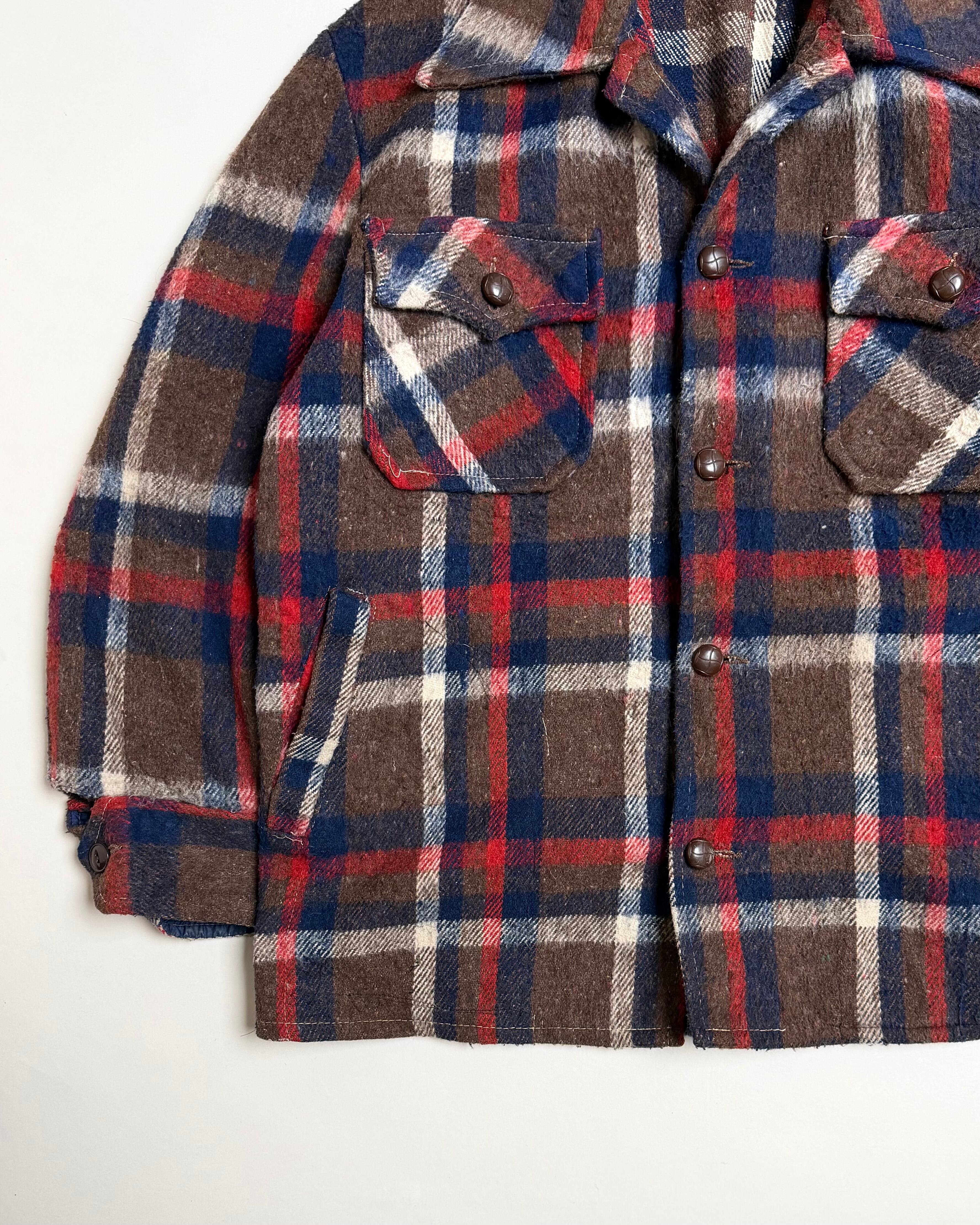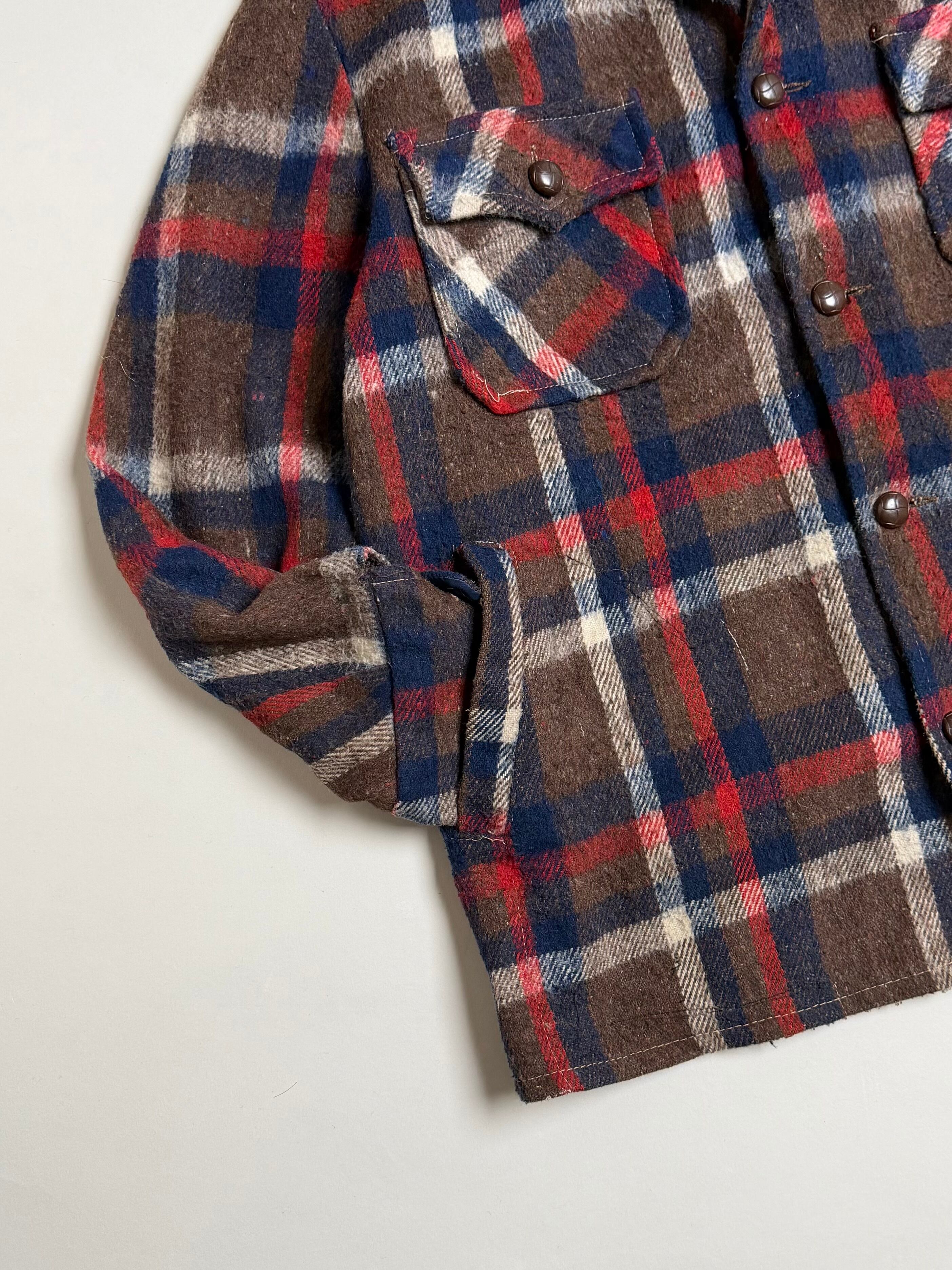 70's SHAGGY CHECK PATTERN WOOL SHIRT JACKET