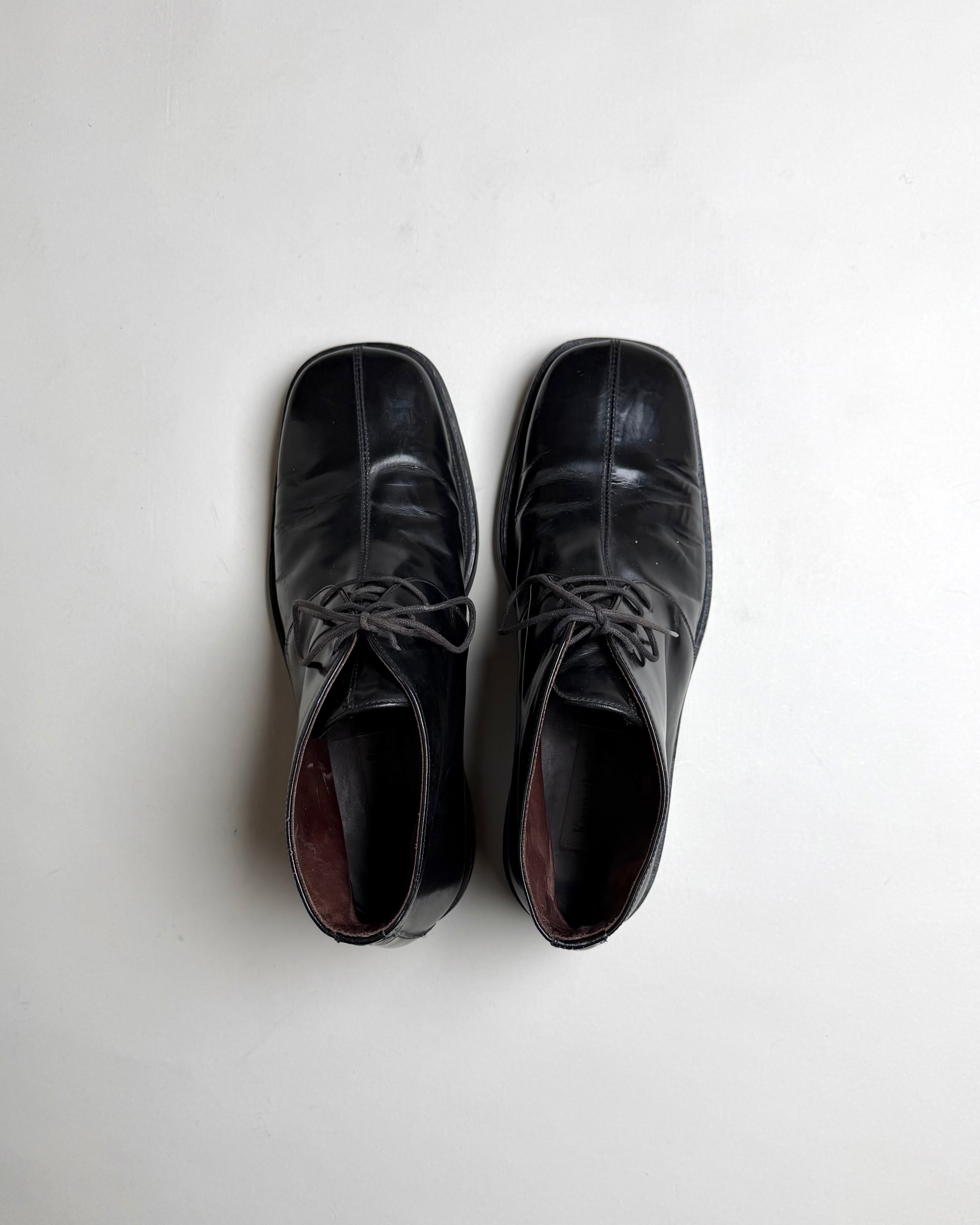 90's "Kenneth Cole" SQUARE TOE LEATHER LACE UP BOOTS -MADE IN ITALY-