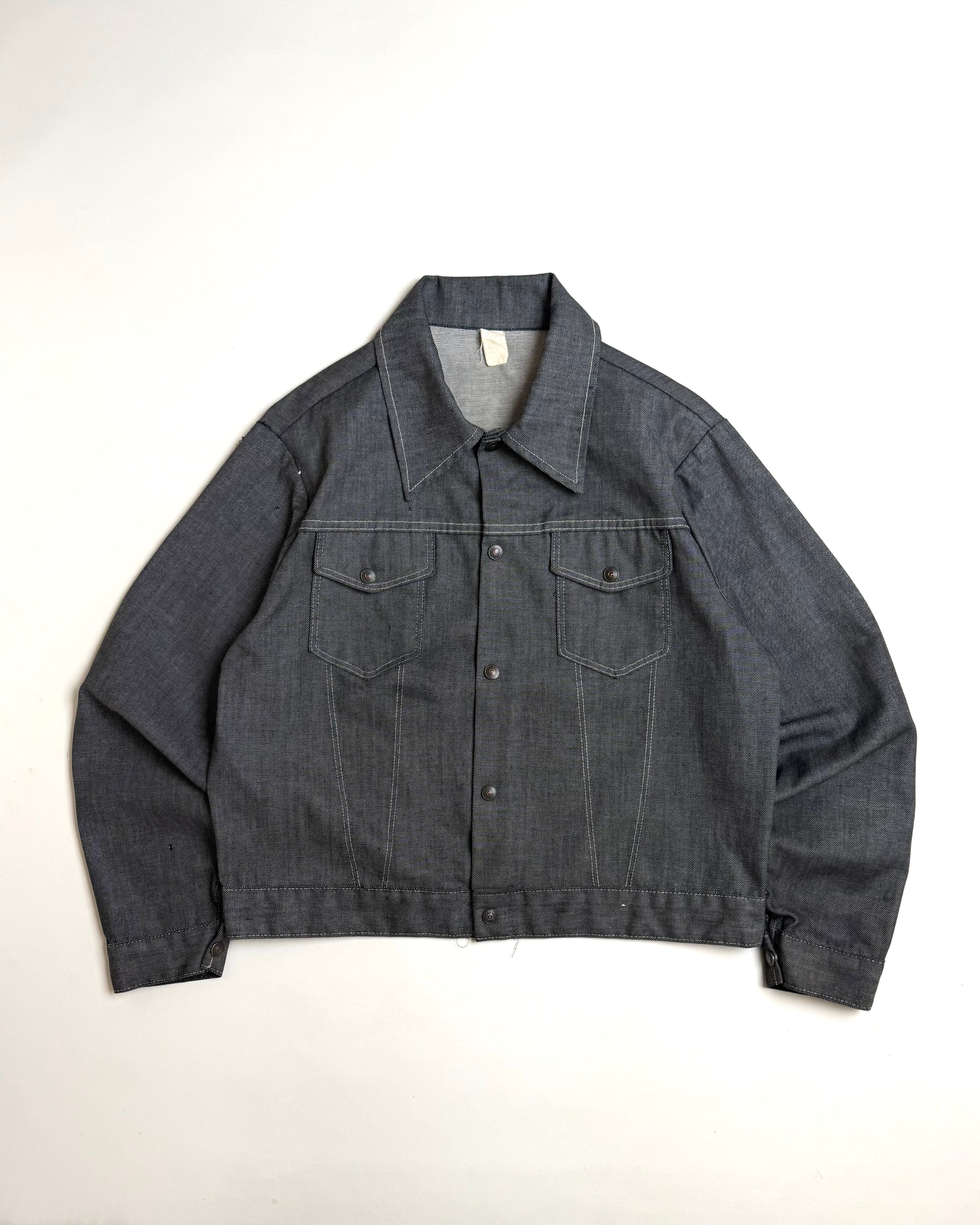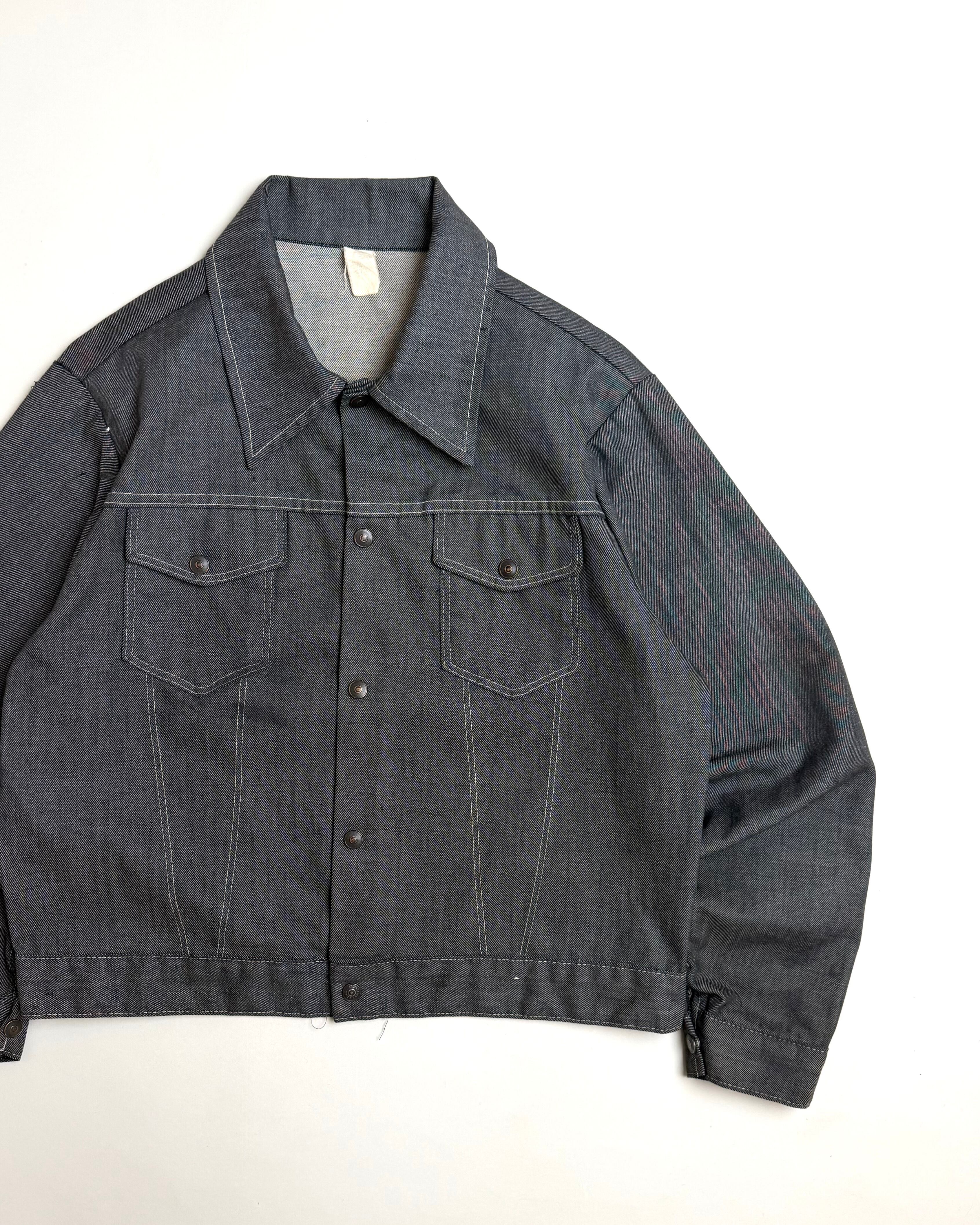 70's-80's OLD BLACK CHAMBRAY DENIM TRACKER JACKET