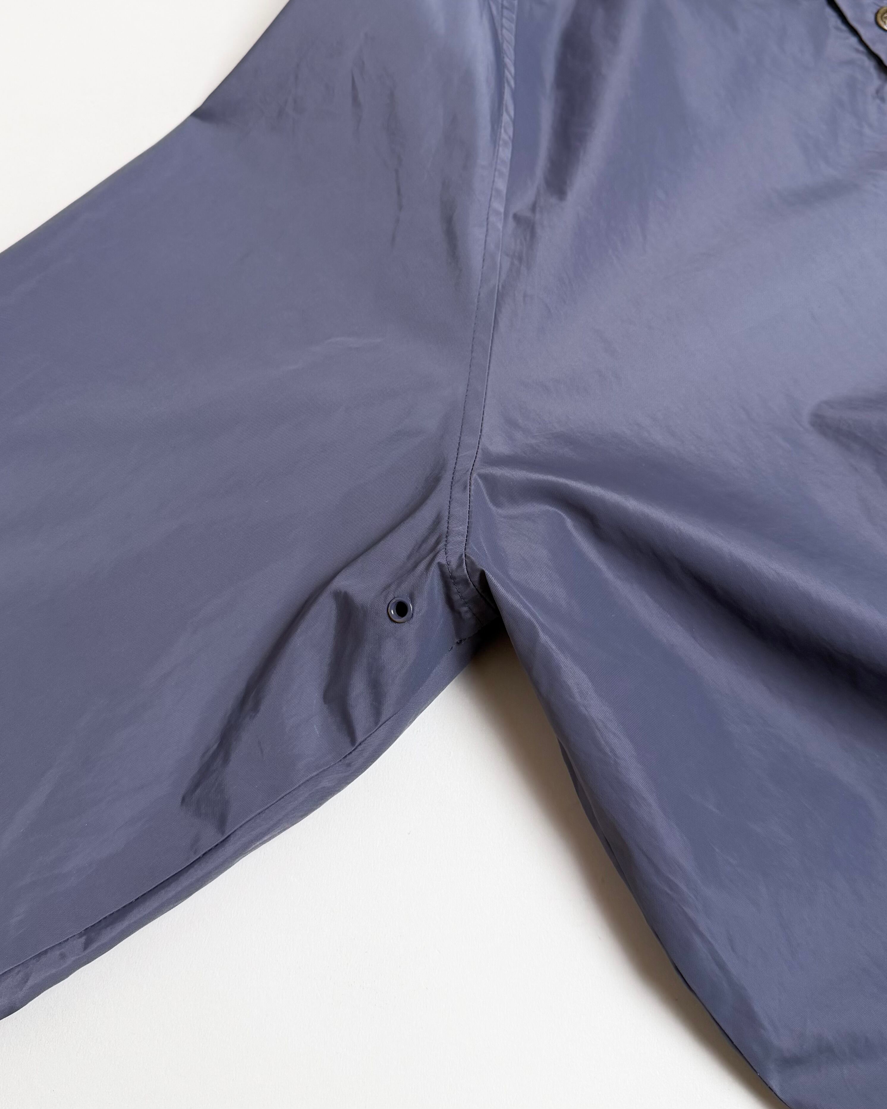 パリッとハリのある高密度ナイロン生地に褪色した様なアンニュイなパープルカラーが目を惹くナイロンプルオーバー。
