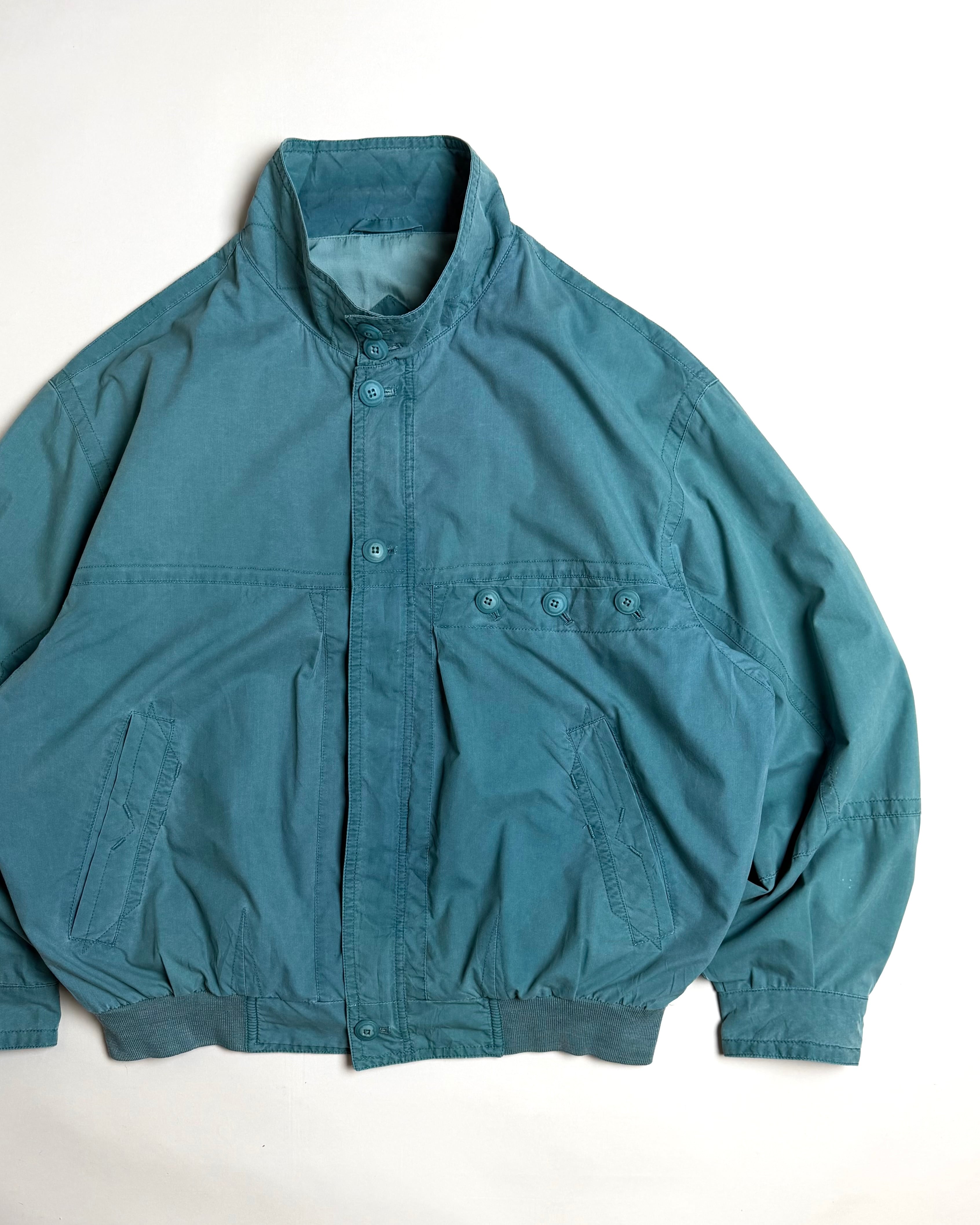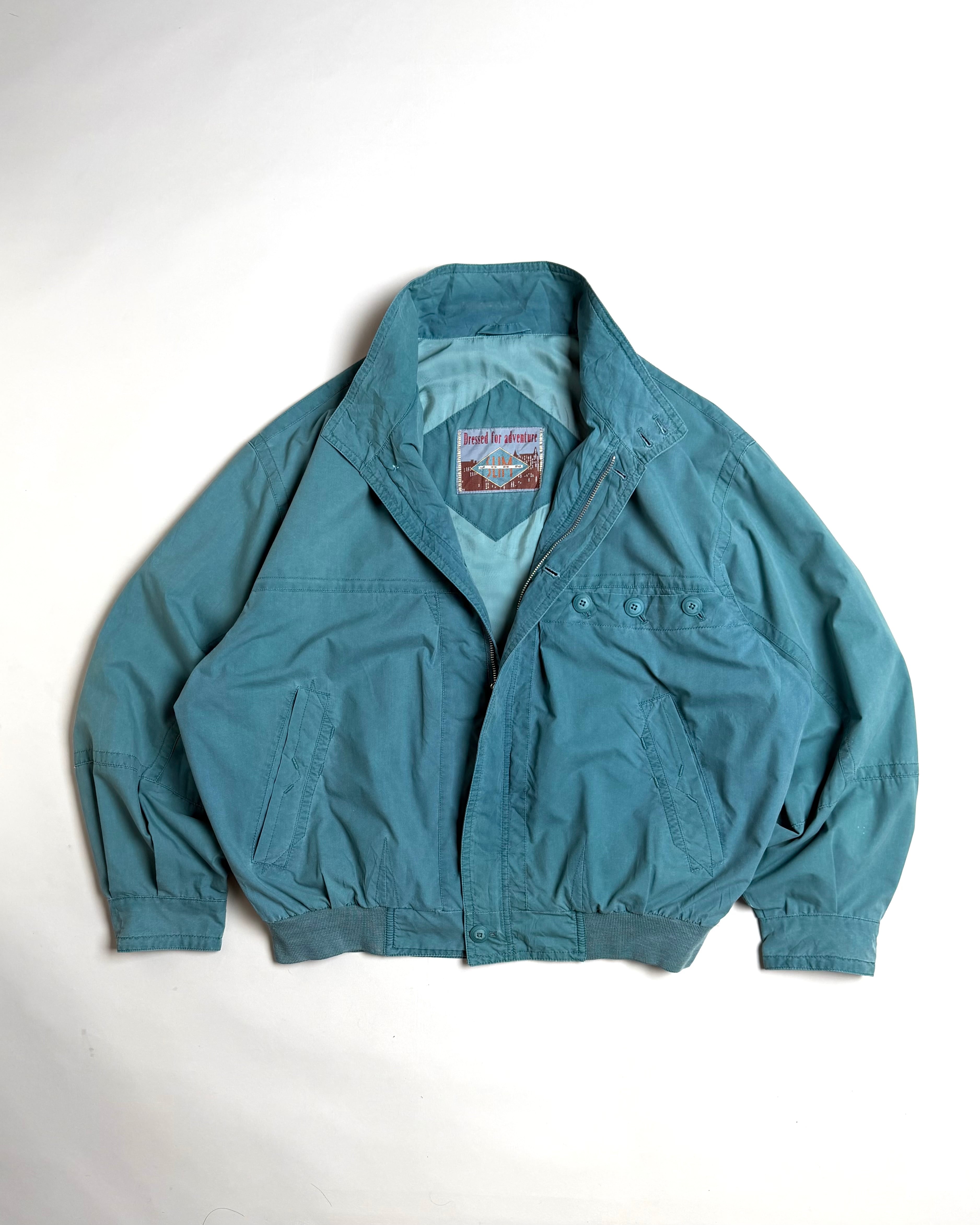 軽やかなコットン×ポリの混紡素材、発色の良いターコイズブルーが目を惹くボンバージャケット。