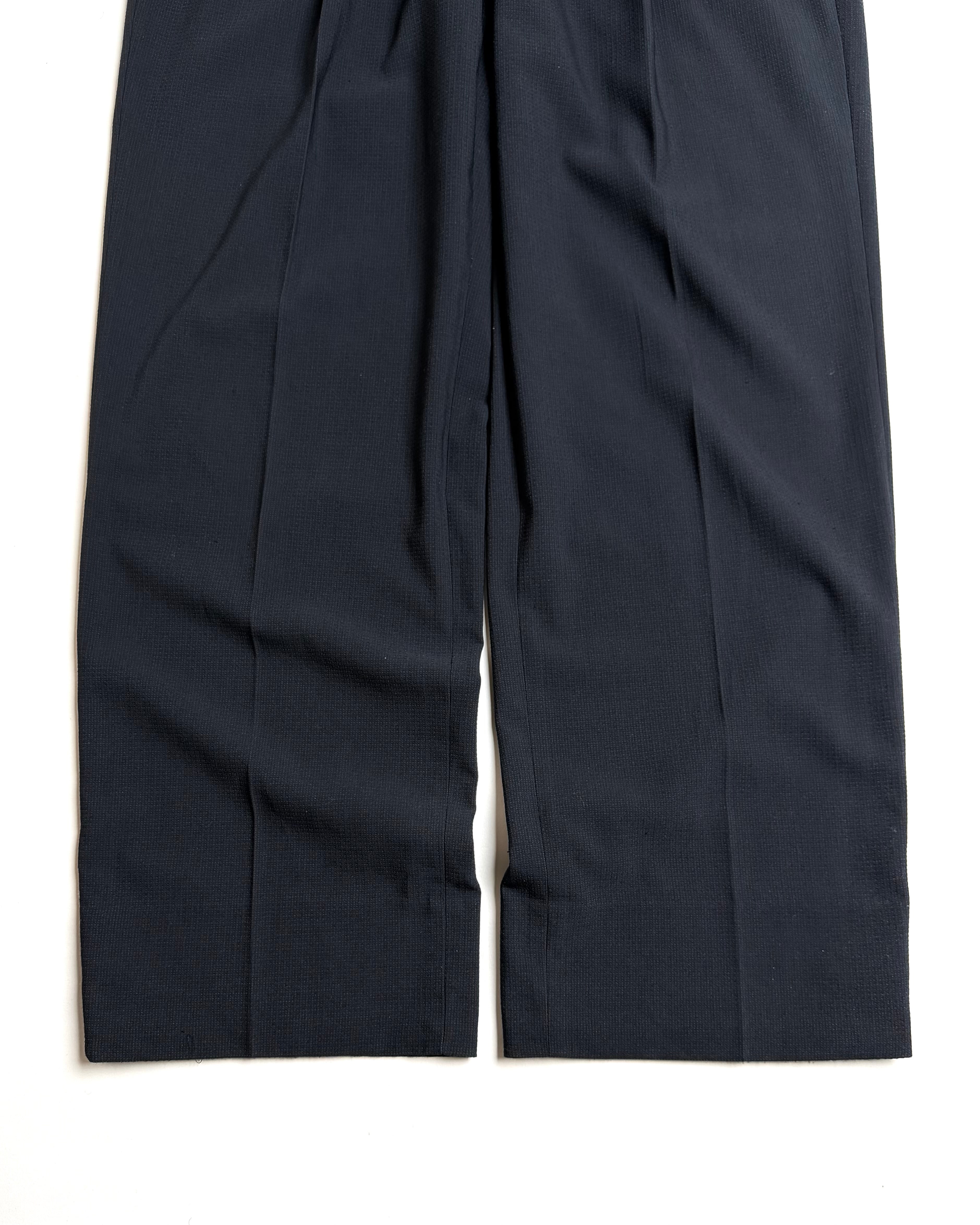ずっしりと重みのあるドレープ感に優れたサマーウール素材のワイドスラックス。