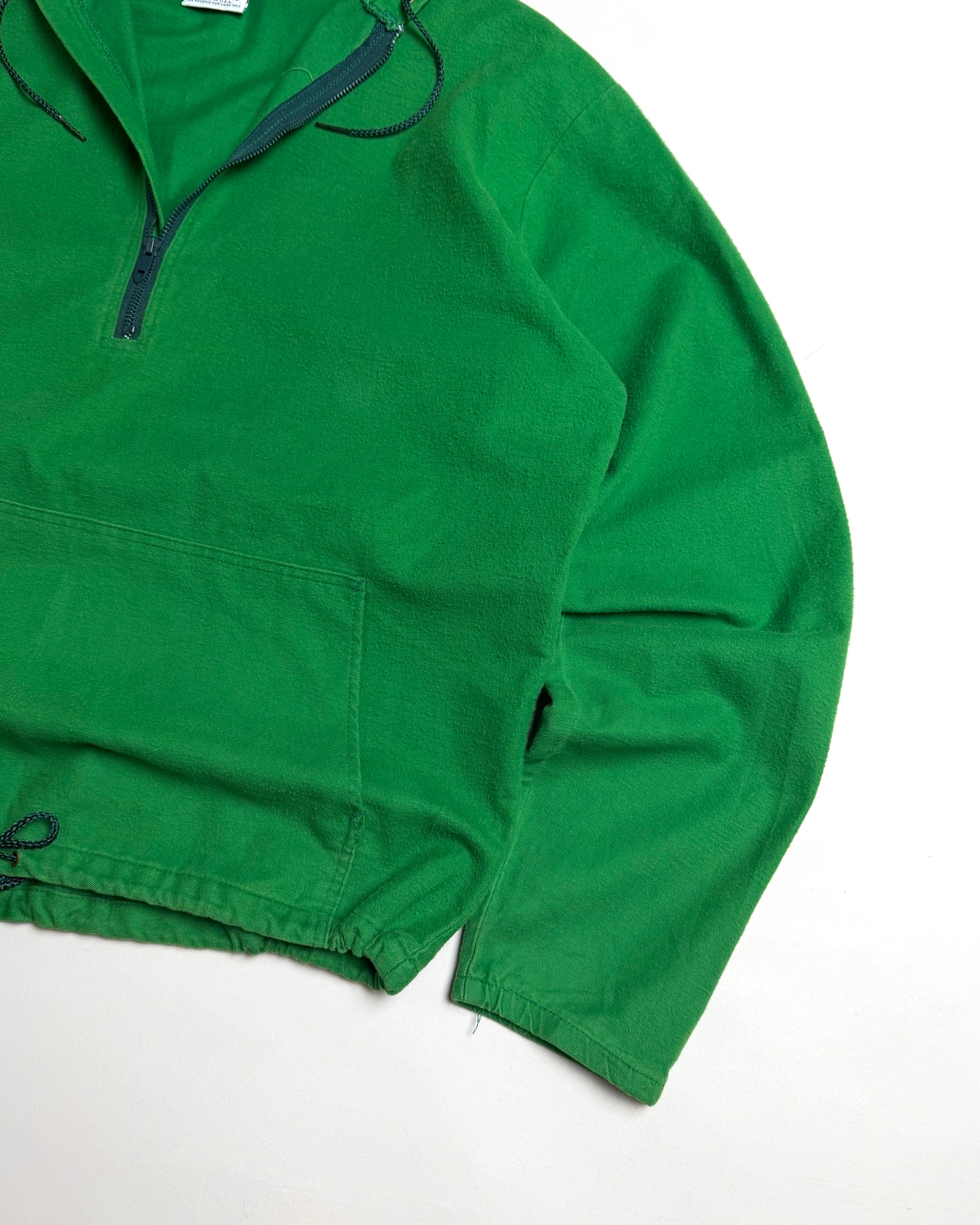 程よく起毛した柔らかなシャモアクロスのオールコットンボディに発色の良いグリーンカラーが魅力的なアノラックデザインパーカー。