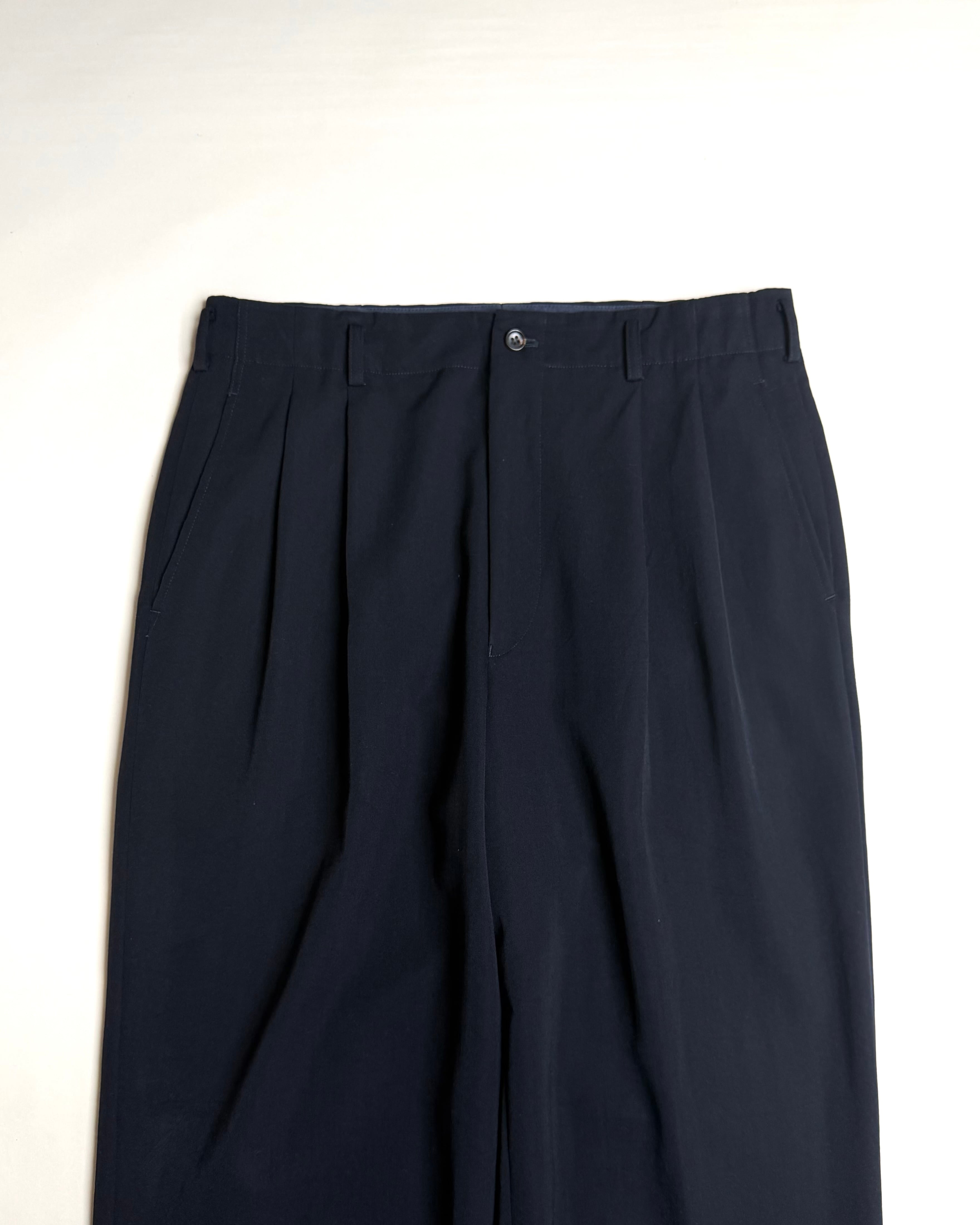 ブラックに近い深いネイビーカラーにシンプルな2タックシルエット。空気を含んだ様な腰回りと裾にかけてストンと落ちるこのブランドらしい立体的なシルエットが魅力的な一本。