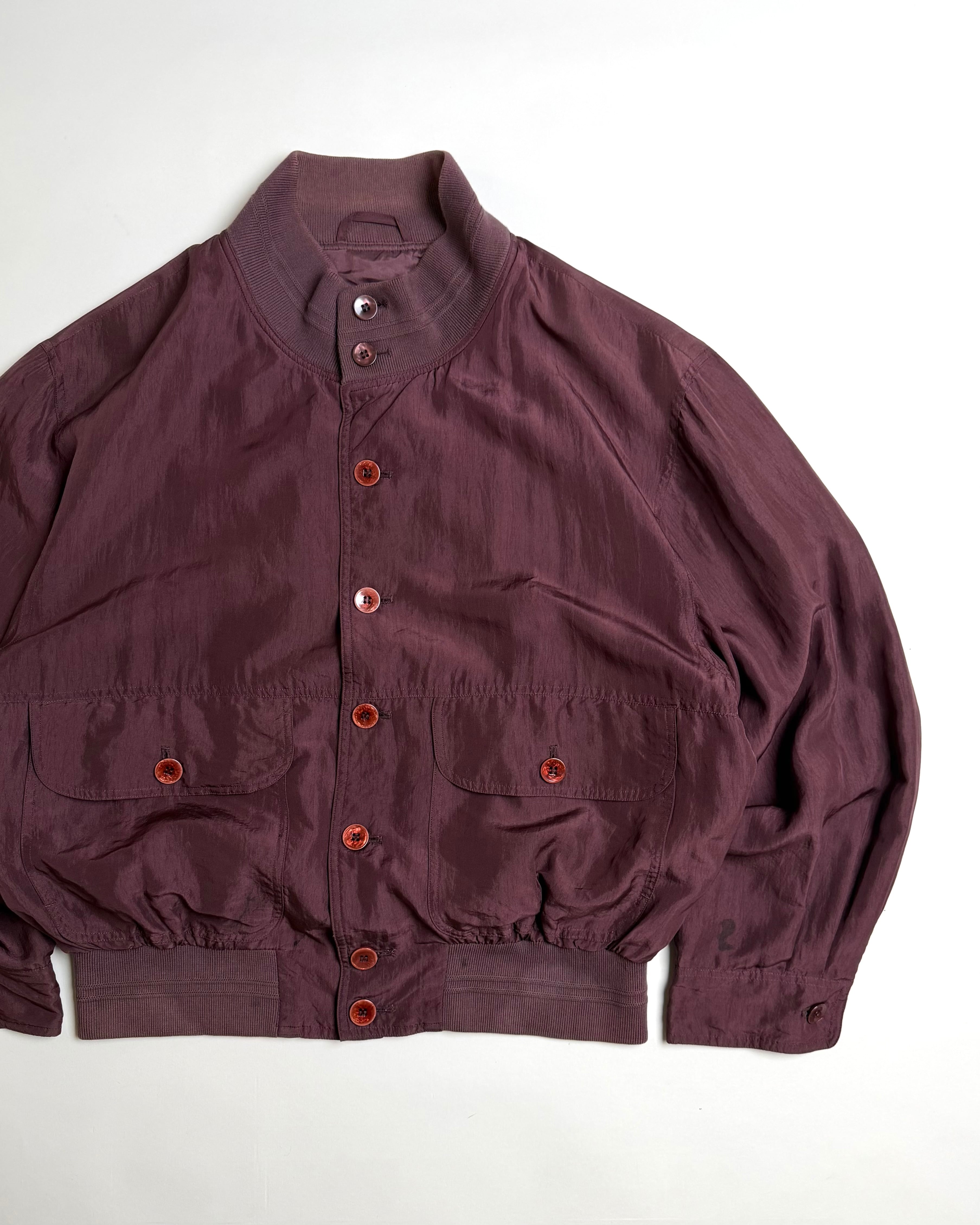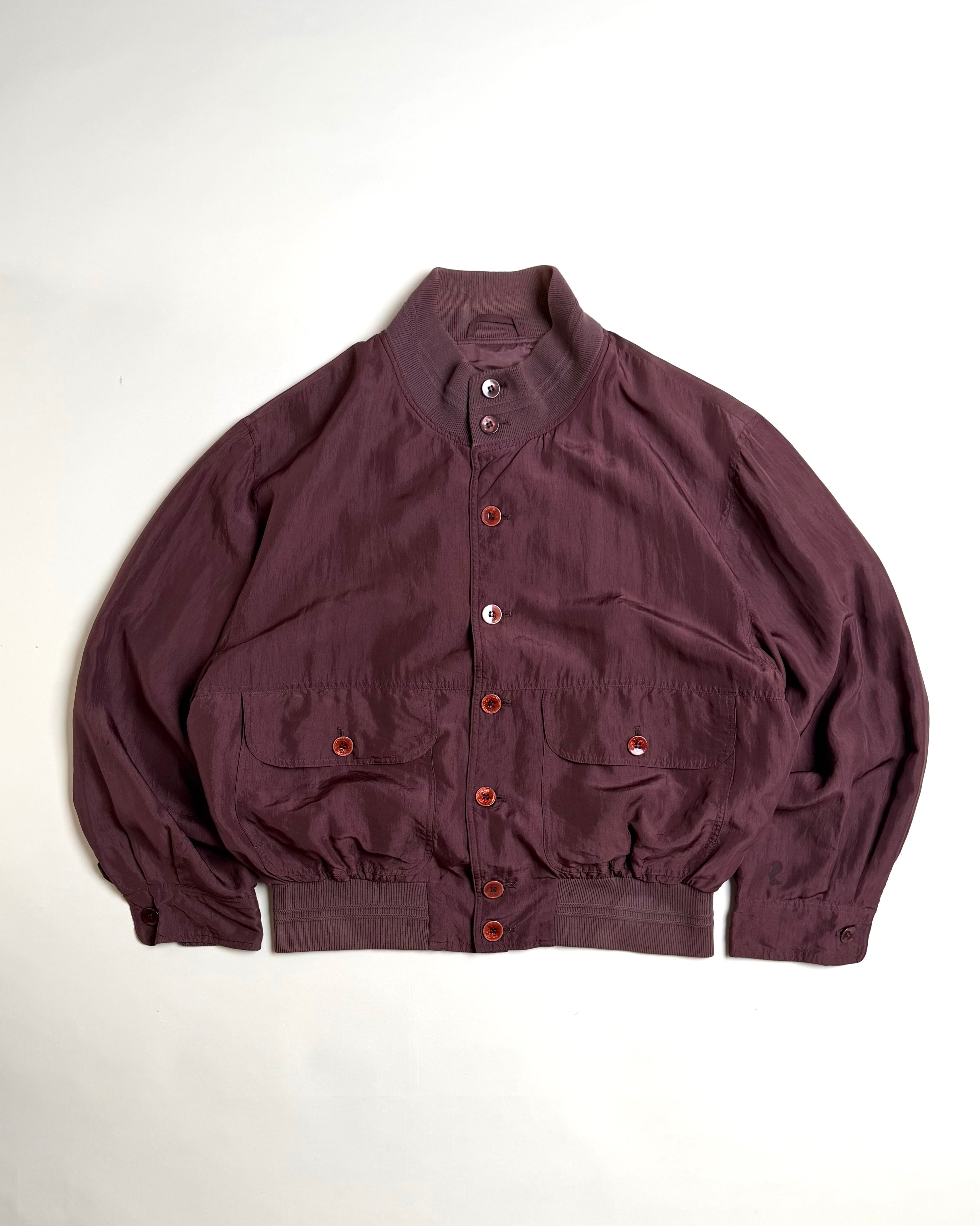 淡いワインレッドカラーにシルク特有の光沢のある表情。大振りにとられた身幅からなる太めのアーム、ユーロ物らしい丸みを帯びたシルエットバランスが魅力的◎
