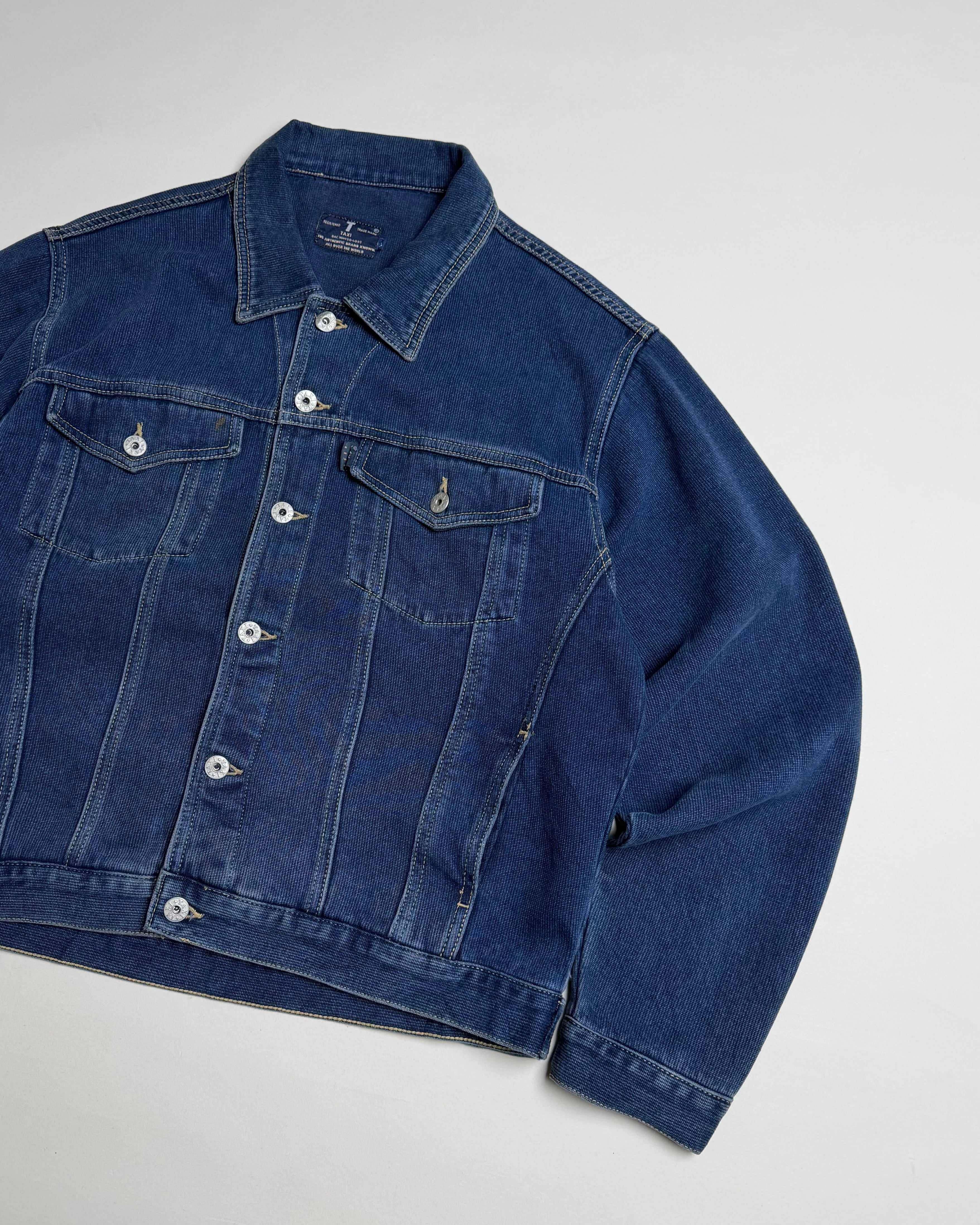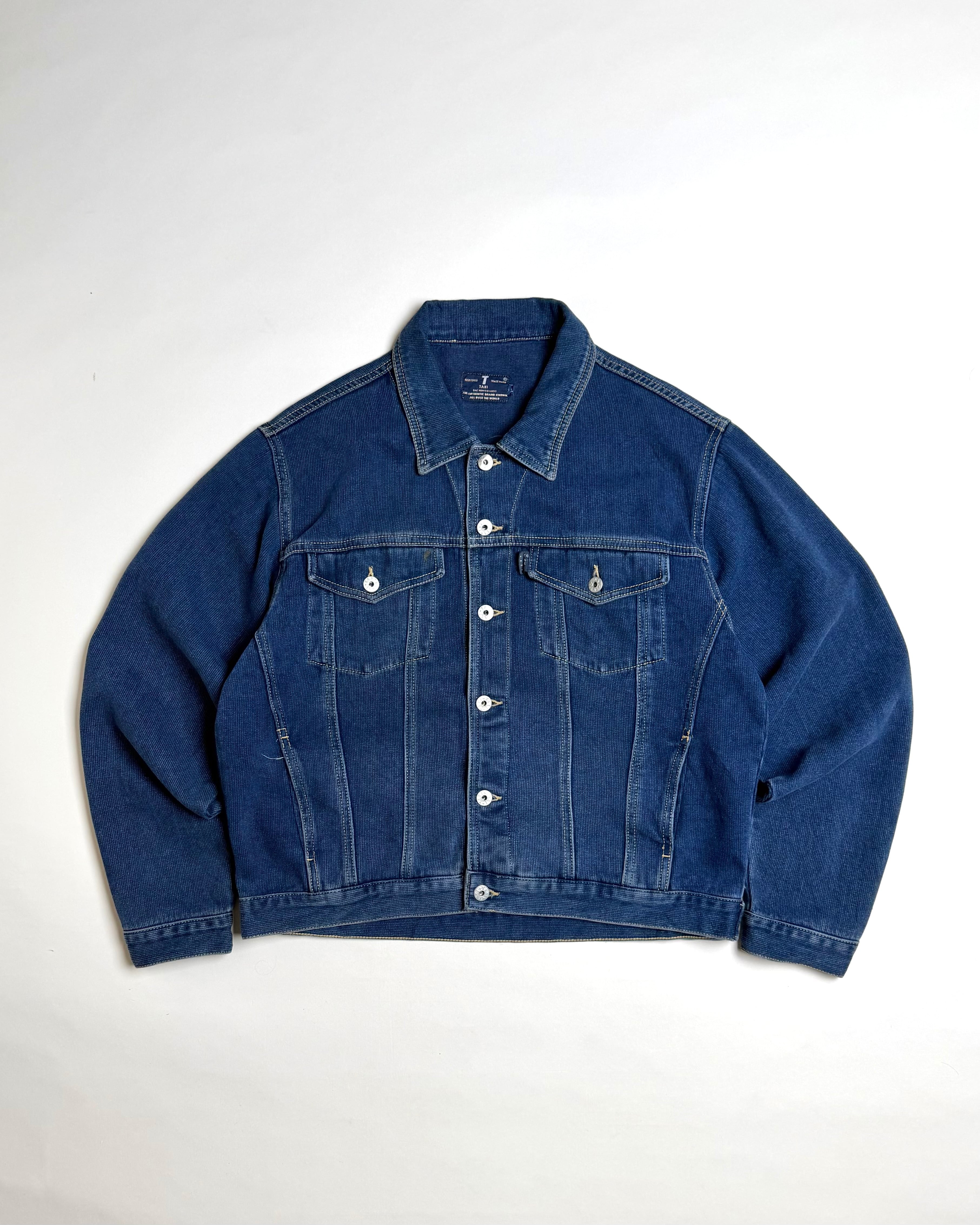 表情のあるピケ織にインディゴ染めされた柔らかなオールコットンボディ。